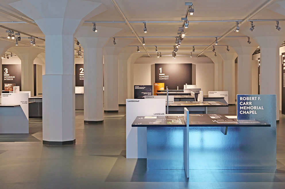 In the exhibition in Heerlen, however, the curator Andrea Croé does not address the broad spectrum of Mies’s structures that have been restored or converted, but rather focuses on the five major exemplary edifices: The exhibition showcases five current best-practice examples in Europe and the United States. Chicago is represented by Crown Hall on the IIT campus, the neighboring Robert F. Carr Memorial Chapel, and the apartment high-rises on Lake Shore Drive. From Europe two pre-War projects were selected whose subsequent use could scarcely be greater in contrast: Whereas Villa Tugendhat in Brno, having been restored as far as possible to its original state, was turned into a museum, the Verseidag production and warehouse buildings in Krefeld, some of which are still ruins while others are in the process of being restored, will soon be the heart of a new business park for creatives.