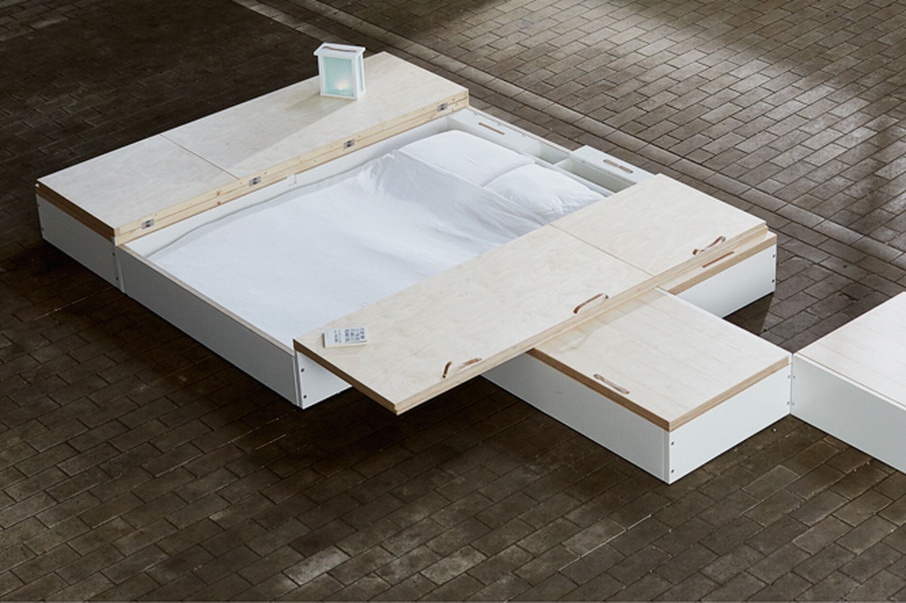 What would it be like if everything that is only temporarily used in the home could be quickly and easily stored in the floor? Bed, books or sports equipment disappear with a single movement of the hand – close the lid and the free space is ready. With "MoreFloor", Dutch designer Juul de Bruijn has developed a prototype that uses 30-centimetre-high wooden boxes for storage: Placed side by side and individually adapted, they add an extra square metre. The modular system can thus be installed in an existing room without reducing the floor space. At the same time, the micro-living solution solves fixed definitions of room division: what is below the surfaces can be individually selected. From the subdivision for the storage of smaller objects to the complete bed unit, the practical area can be efficiently designed as required. (am)