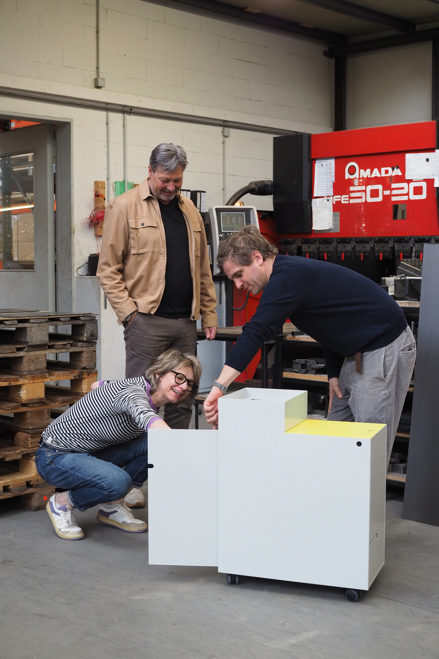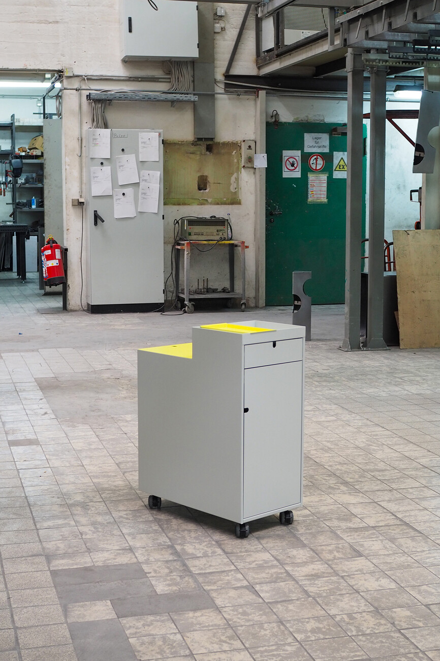 The great expertise in the manual series production of durable, robust furniture also benefited the development of ‘NEXT’: ‘Thanks to the competent support of müller möbelfabrikation in product development, a number of design adjustments were made that made the roll containers even more stable and durable. This required some dimensions and details to be revised – without losing sight of the design, however,’ says Mark Braun. Each piece of furniture is handmade from steel in the company's own factory in Augsburg, a durable material that can be 100 per cent recycled if necessary. "müller has outstanding manufacturing expertise. Above all, however, it is the people behind müller who make the company so special. The direct exchange and decisive decision-making were particularly valuable for our joint project," says the designer.