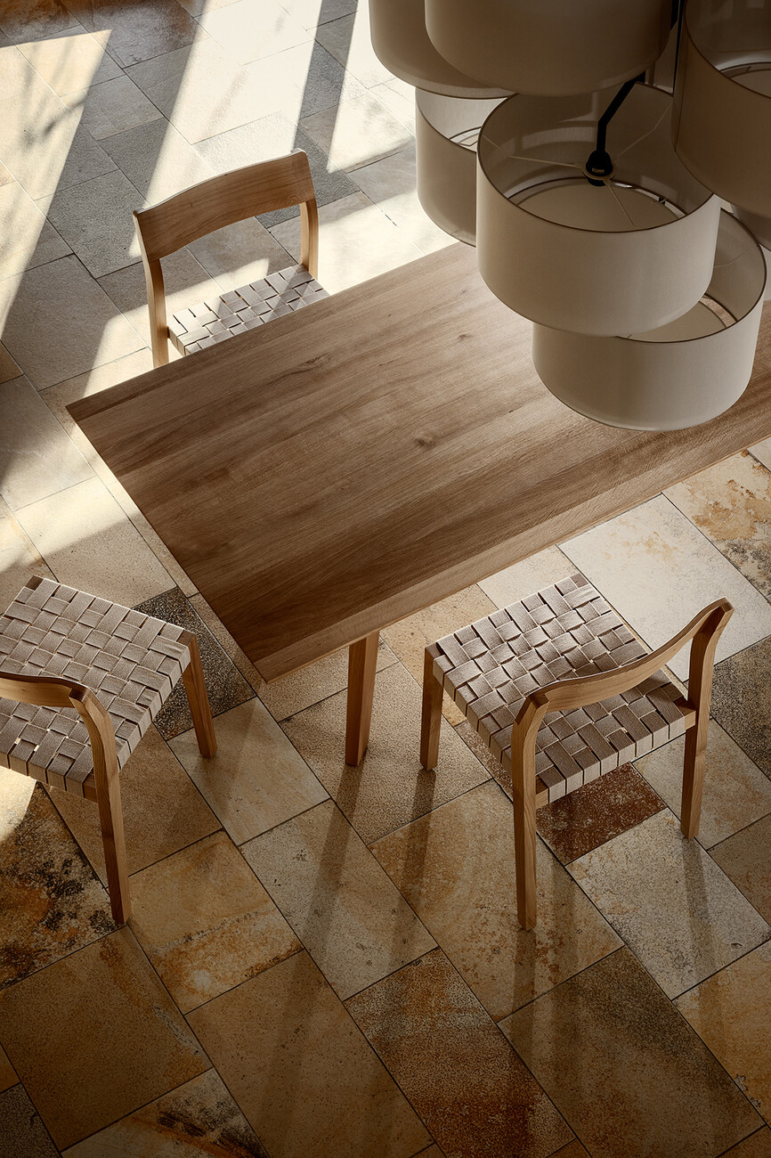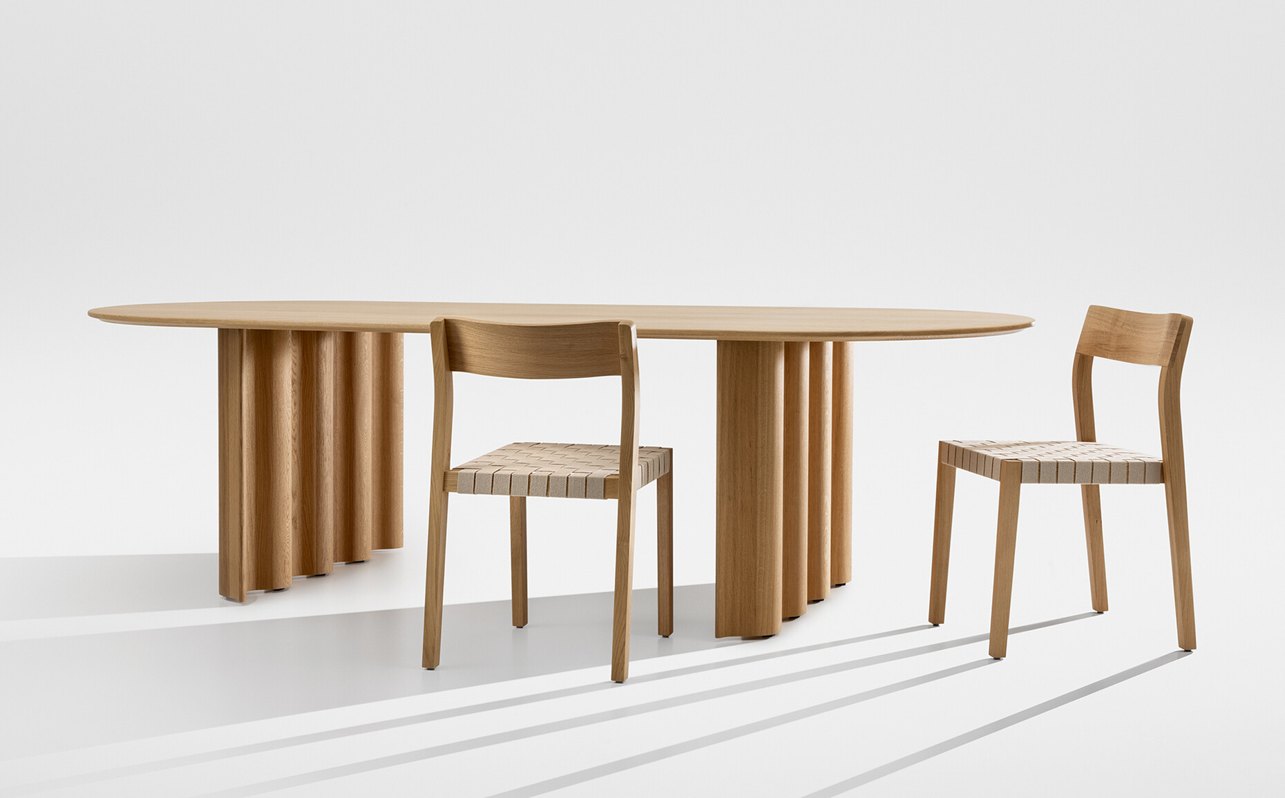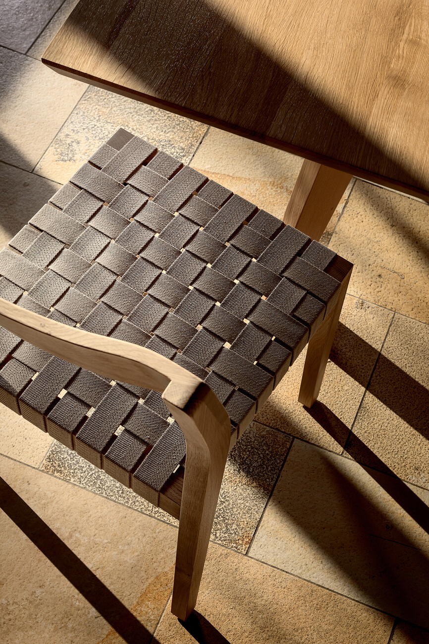 Zeitraum is presenting a selection of its timeless classics and an exciting new development in this extraordinary setting: designer Catharina Lorenz has rethought the ‘SIT’ chair collection for the traditional company. Its clear form made of solid wood in combination with a wickerwork upholstery alternative is a strong reference to the aesthetics of craftsmanship. The seat is woven by hand with a robust cotton belt and offers comfortable seating. At the same time, the ensemble emphasises the long service life of Zeitraum furniture: if one of the straps needs to be replaced, this can be done with little effort.