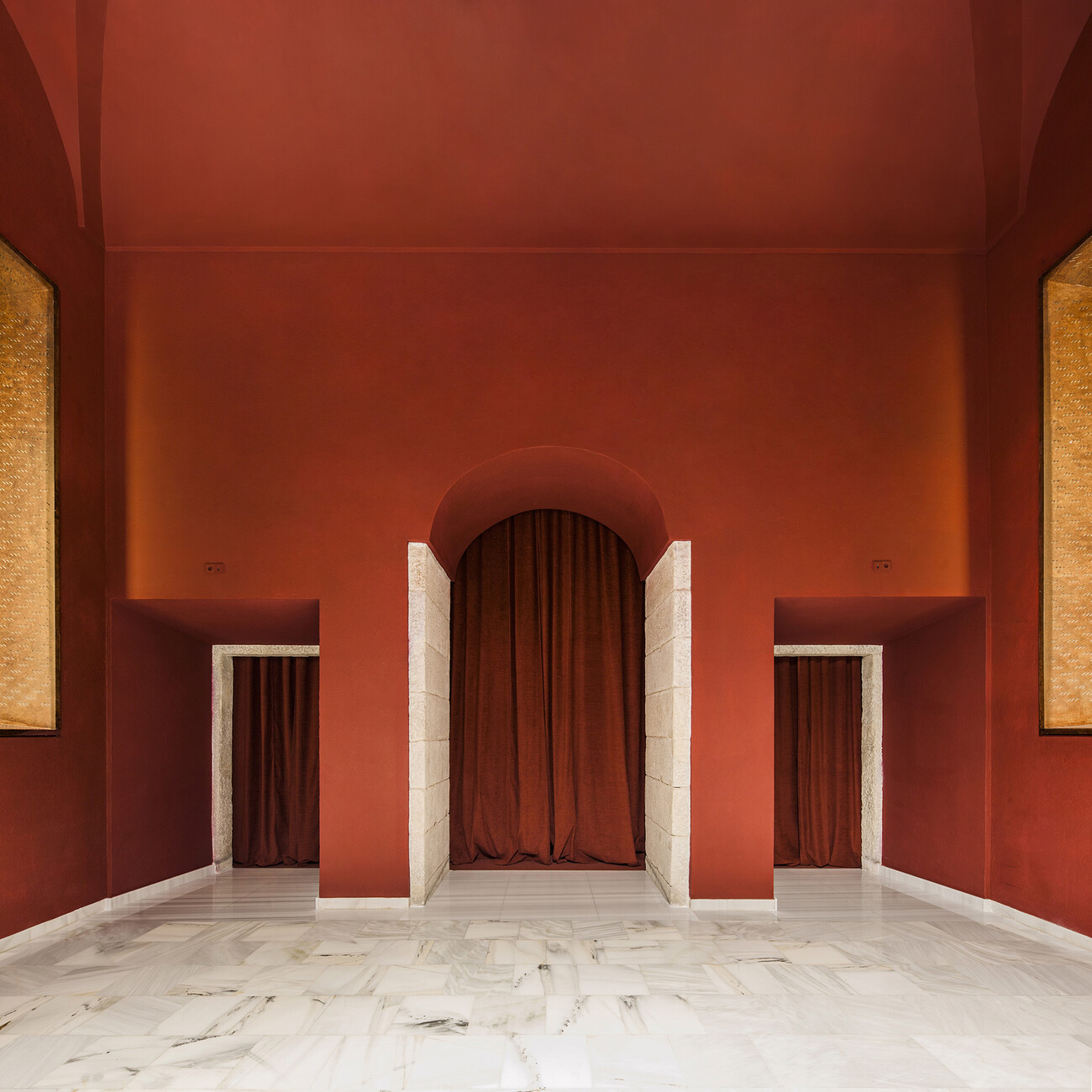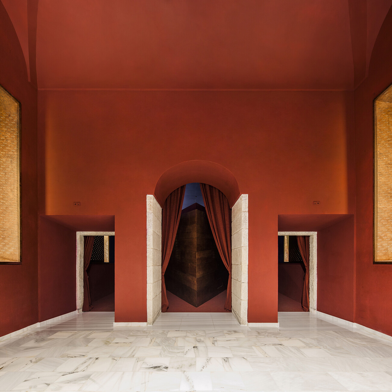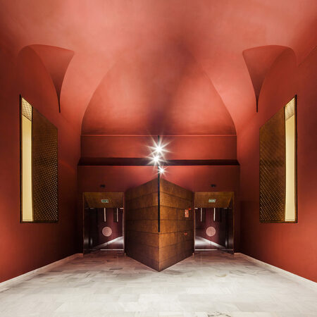 At the same time, the recurring geometry, which resembles a forceful beat, intensifies the surreal atmosphere of the scene. It is reminiscent of the tradition of art cinema design and masterpieces by David Lynch, Luis Buñuel and Pedro Almodóvar. Bach Arquitectes have thus artfully repurposed the existing structure for the new screening room at the Museo Nacional Centro de Arte Reina Sofía, creating a mystical stage whose visual depth attunes guests to the transition into the world of film.