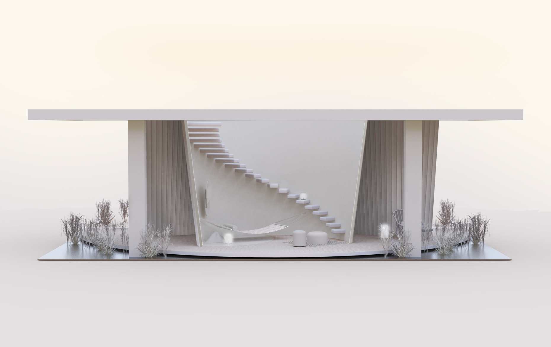 So, it is hardly surprising that at imm 2020 “Das Haus” – a large-scale scale installation of a living situation designed every year by a different young design studio has set its sights on the future and explored the topic “outdoor living”. This time it was designed by Spanish studio MUT. Thanks to their long-standing collaboration with furniture manufacturer Expormim the Valencia-based designers can draw on ample outdoor experience. For example, their hanging seat “Nautica” for Expormim garnered several international prizes. In designing “Das Haus” they were primarily inspired by the traditional lifestyle of their native city: “Here in the evenings the old people sit on the street in front of their houses and at the weekend families travel to their little house in the country. Then they make the famous Valencian paella on a wood-fired outdoor stove,” says Alberto Sanchez, designer and founder of MUT Design by way of describing the feeling “Das Haus” is meant to convey.