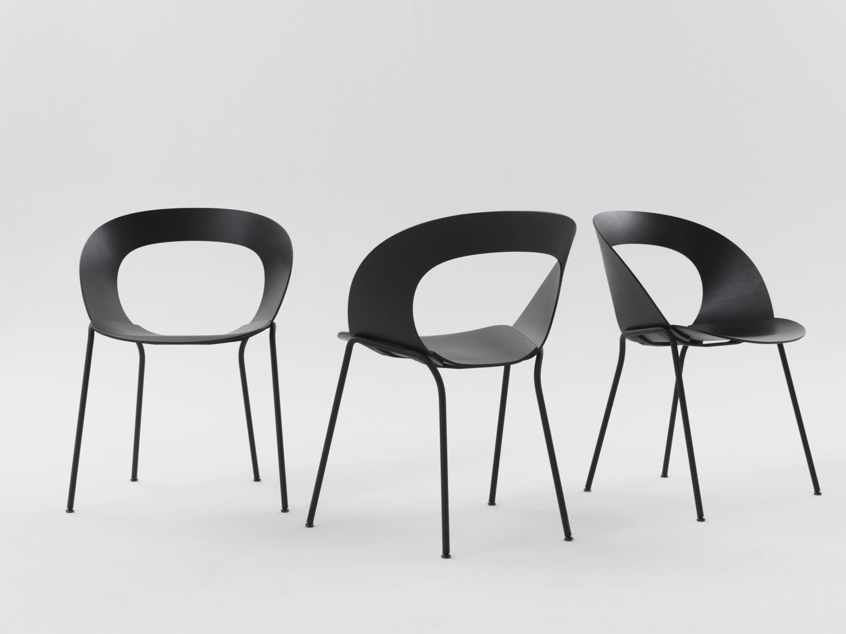 The central design element of "mudra" is an open loop shape that refers to baroque chair designs of the 17th century. At the same time, the name of the chair is derived from the designation for symbolic hand gestures from Hinduism and Buddhism. For the production of "mudra" only sustainable, well recyclable or recycled materials are used, which can be separated by type. Individual parts can be easily exchanged and replaced. "mudra" is also available with a steel frame or with a wooden frame, which is why it can be used flexibly in various places such as cafeterias, canteens, restaurants or hotel lobbies.
