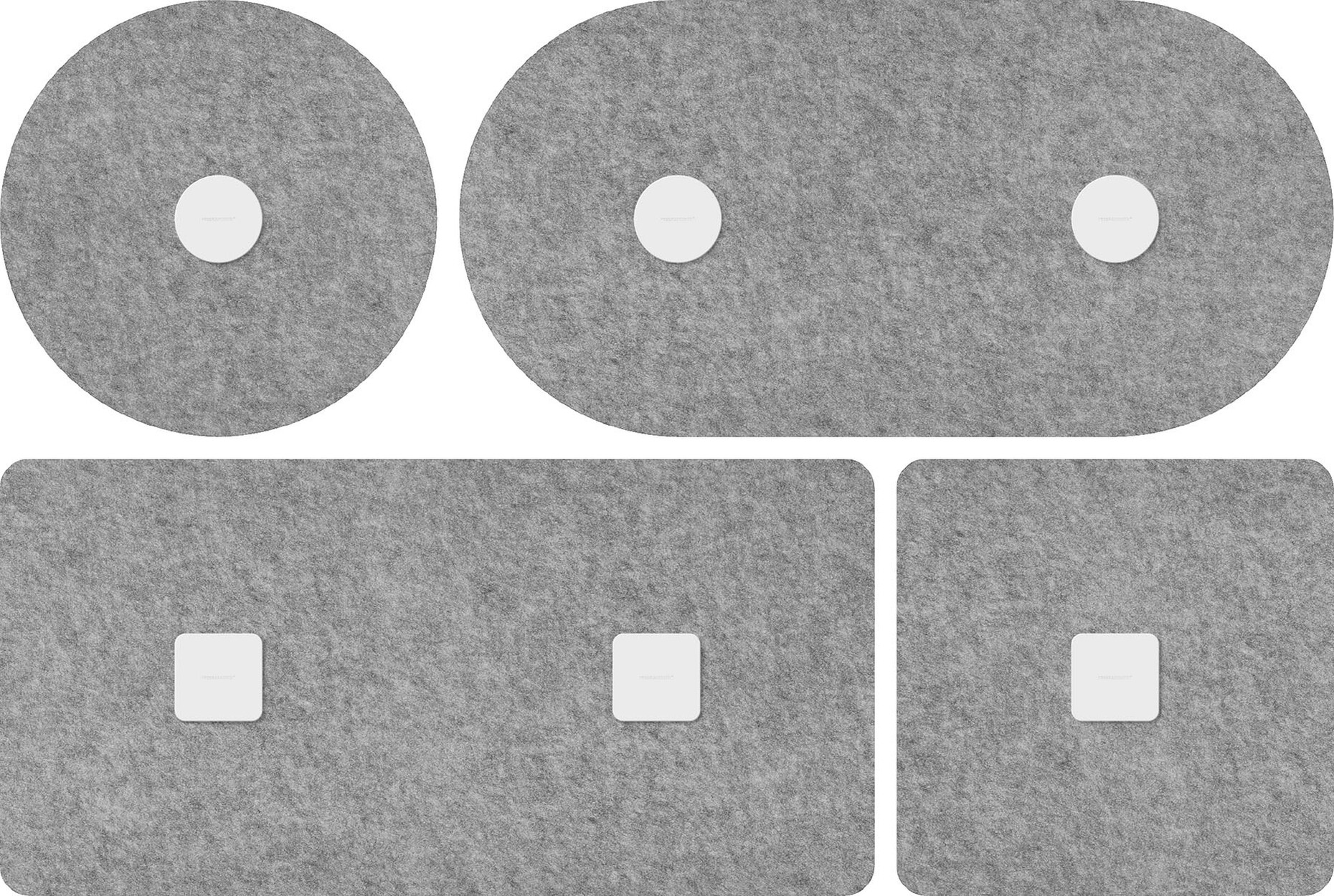 “Disc’n Dots” works like a simplified version of the “Rossoacoustic Pad System” that was developed five years ago. This means that the brand has an application in its portfolio that convinces with clear, geometric shapes, appealing colors, and a pleasant acoustic room climate – especially when room acoustics are the lowest priority in planning. With their different thicknesses and radii, the individual acoustic elements of “Disc’n Dots” can be arranged in fixed structures or loose groupings. For this, there are square and rectangular “Disc Elements”, which are particularly suitable for clear geometric arrangements, while circular and oval “Disc Elements” offer scope for free and playful room design. The soft core features a special open-pored fleece that absorbs unwanted sound reflections. Meanwhile, another design element of “Disc’n Dots” is the round or square dot, which serves as a fastener, as its rear side allows simple “single-point installation”. In addition to direct attachment to the wall or ceiling, “Disc’n Dots” can also be suspended from the ceiling to create a sculptural effect.