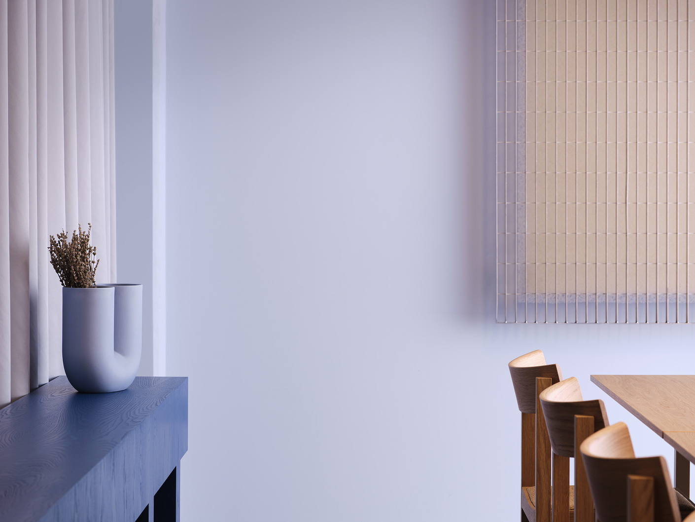 And if Note Design Studio tends to prefer Scandinavian and particularly Swedish furniture manufacturers and designers for their projects, the furnishings in Douglas House draw on an impressive diversity of items from all over Europe. For this project new products are mixed up with timeless classics, guaranteeing that the look is always stimulating. One example: the stacking ottoman “Drop” by French designer Pauline Deltour for COR in sandy beige, excellently offsets the “Marenco” armchairs which come in a brilliant shade of ultramarine blue and have been made by Arflex, an Italian manufacturer of furniture, since 1970.