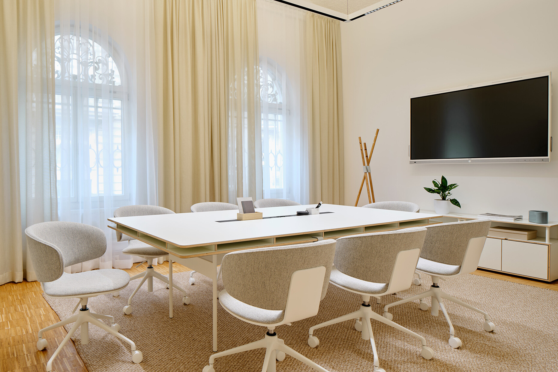 Stylishly furnished business rooms that can be rented as needed are more in demand today than ever before – such as for workshops, hybrid conferences or exclusive events. The ‘Meeting Suites by Bene’ room concept, developed by one of the leading international experts in office design and architecture, comprises elegant suites that offer the perfect balance between a curated atmosphere and practical functionality. Located in the heart of Vienna, just a few minutes' walk from the main railway station, Meeting Suites by Bene is a jewel box with ten rooms: from the Level Suite to the Think Tank, these rooms feature different floor plans, furnishings and interior design that is harmonious down to the last detail. A central element is the flooring from rug expert Object Carpet: the ‘Mediterraneo’ collection by Matteo Thun and Antonio Rodriguez, fitted as free-laying ‘RUGX’, conveys Mediterranean lightness with a look and feel that resembles natural fibres.