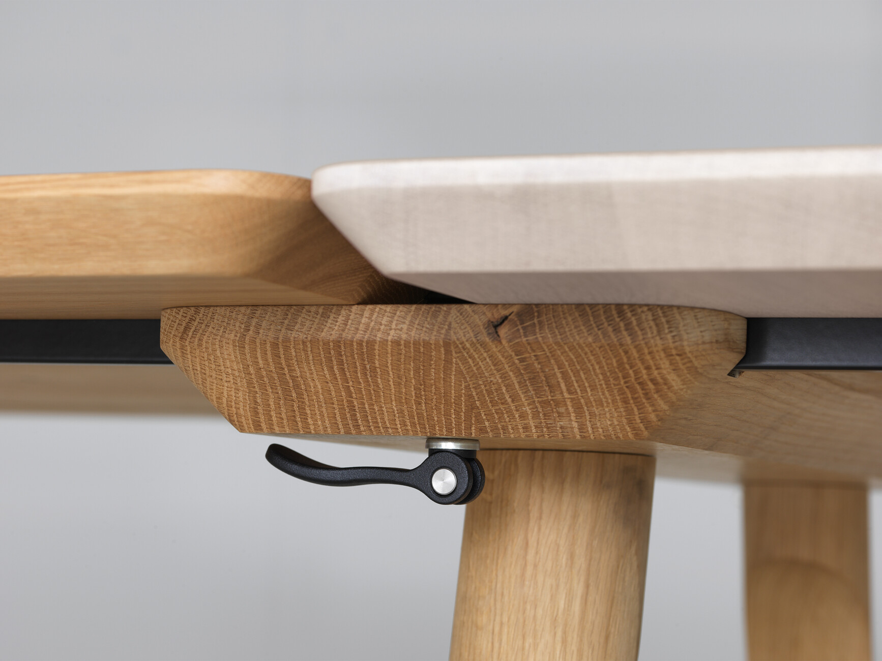 Sebastian Schneider: Naturally, it is not that easy when you are using solid wood for something. After all, wood is a material that never stays still. Which is why the table-tops also have stiffening to stop them from warping. And as the frame is pulled tight using the tension lever excellent rigidity is guaranteed.