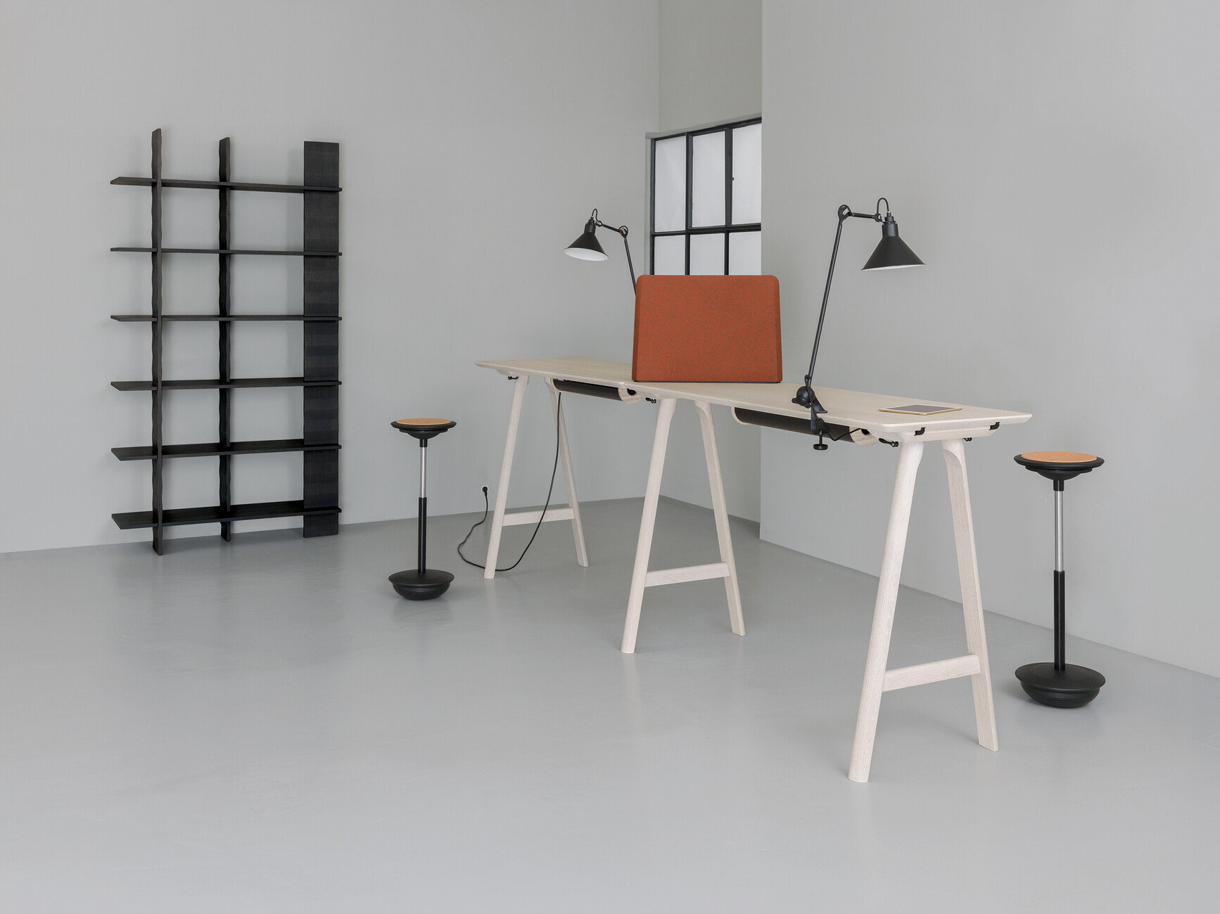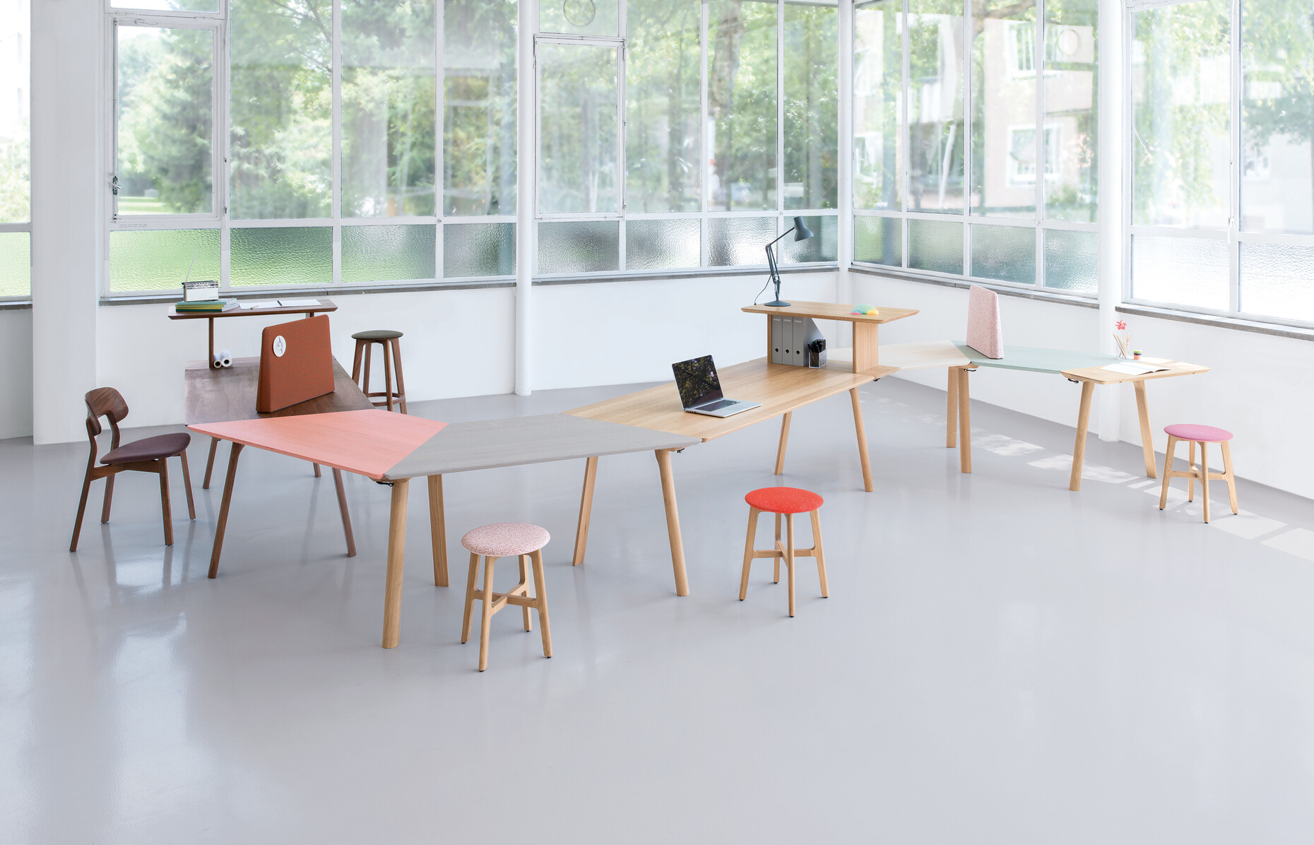 Sebastian Schneider: Other constellations are also possible. It could also be a large office. There is a basic trend in the office sector to reintroduce the feeling of homeliness to the workplace – as regards the materials, too. If we talk about a studio, what is meant is that the furniture comes across more casually than usual – more relaxed and playful. Why shouldn’t an employee who at present only sits at a desk also be able to work standing up, or have a different colored table-top tomorrow?