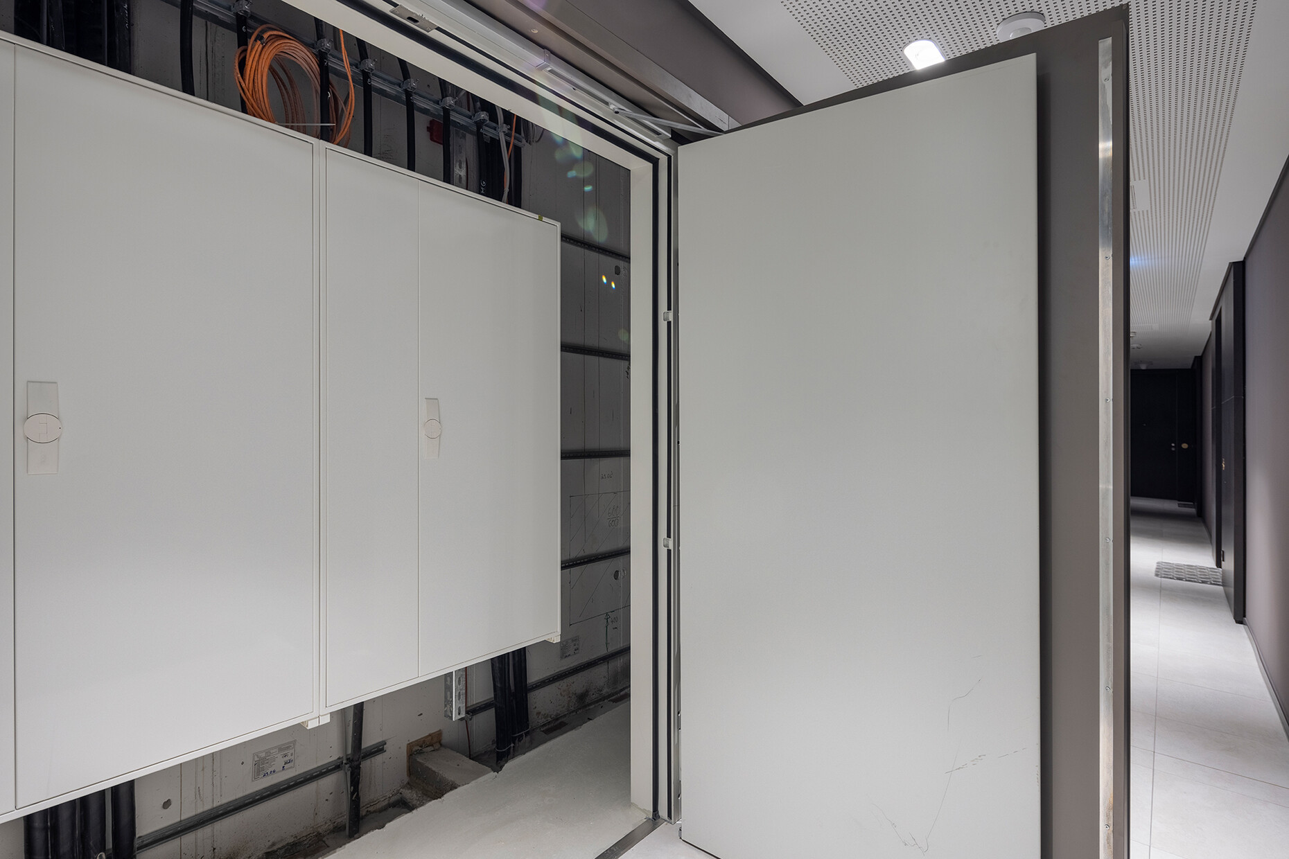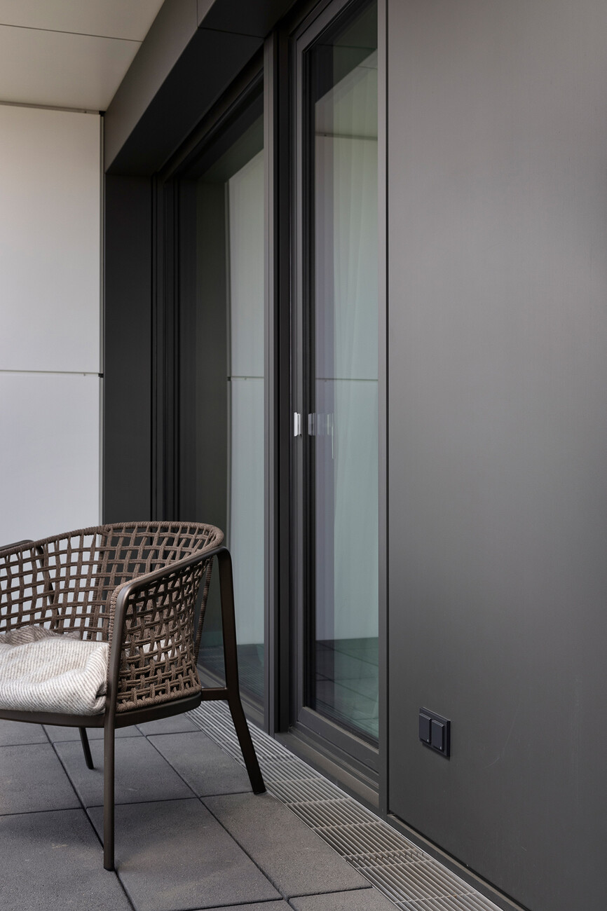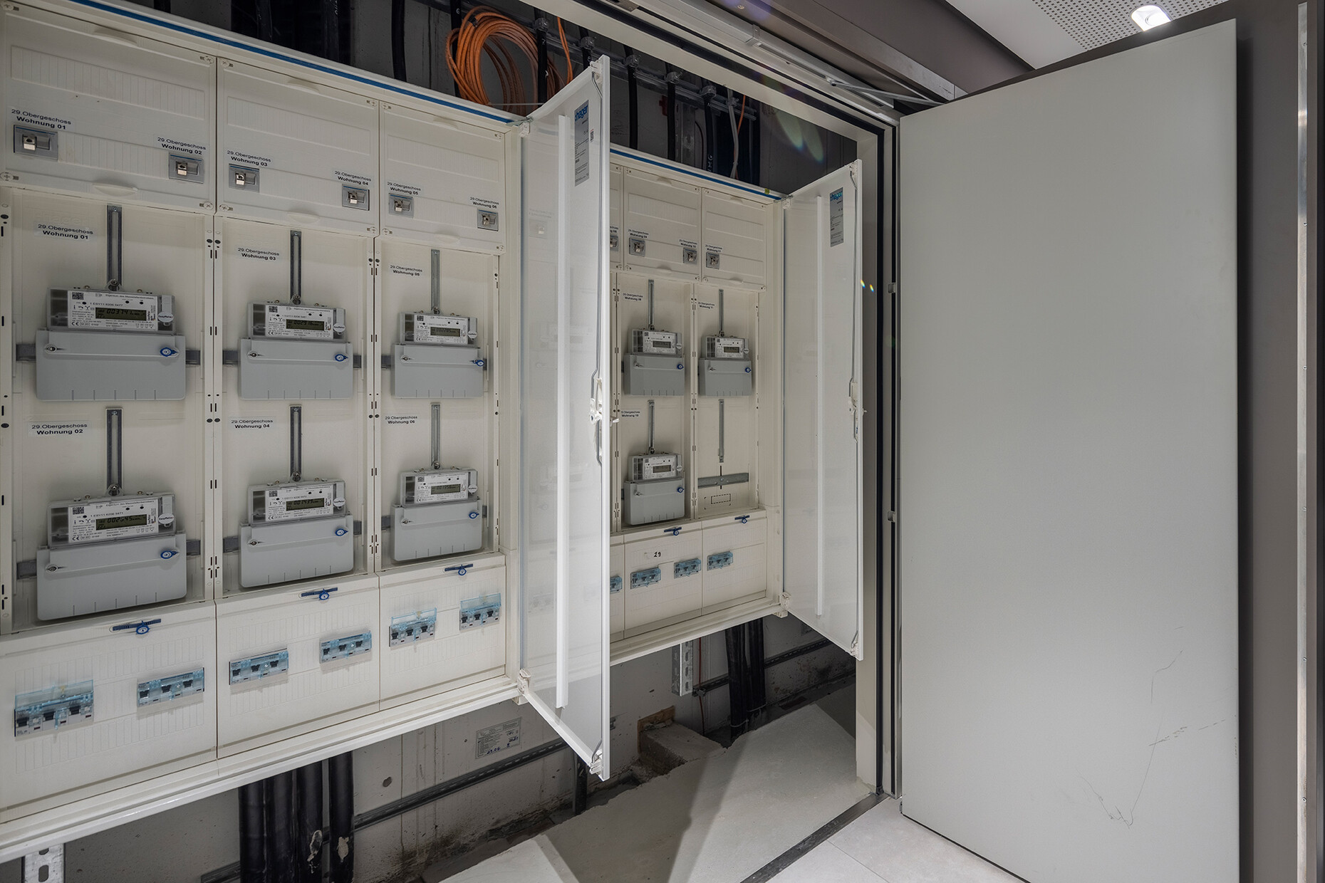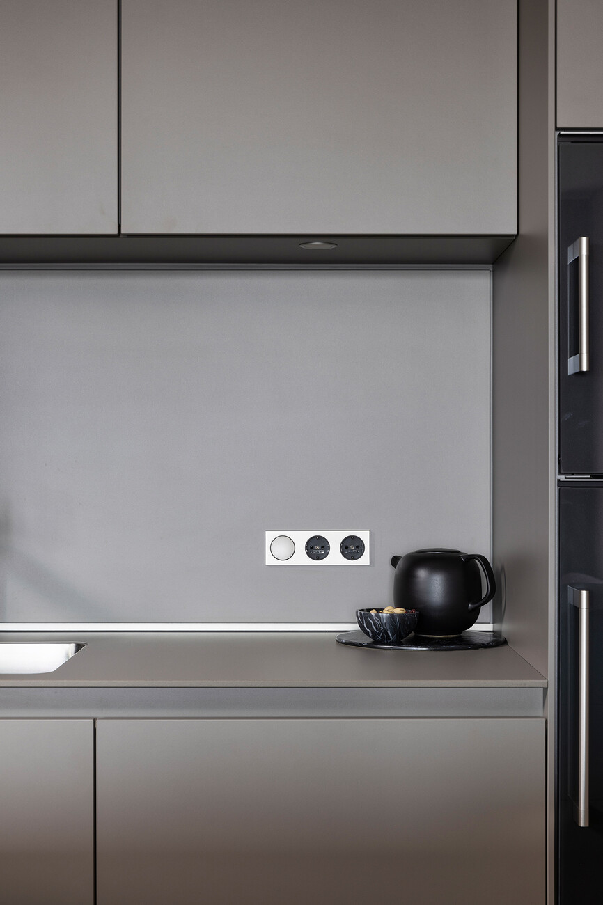 The high quality of the apartments at "One Forty West" can be seen, among other things, in a model apartment created by designer Sebastian Herkner. "It reminds me of a comfortable nest above the metropolis," Herkner says of his design. "My fictional resident is someone who may still live somewhere else but works in Frankfurt, who orders something from the concierge on the way up after work and then ends the day with a glass of wine on his or her balcony." The intention to create apartments with real style extends to the switches, for which the designer chose the "Berker Q.3" switch range from Berker. With their clear contours and flat switching angles, they not only blend into the overall ambience perfectly, but offer a pleasurable feel as well. And as they have the necessary seals, they are IP-44-capable, which makes them the right choice for splash-proof applications both outdoors and in damp rooms. Finally, a metering system from Hager measures consumption per floor in the individual residential units. As a modular technology system equipped with intelligent meters, the system ensures the apartments in "One Forty West" not only have a pleasant ambience, but also a consistent energy supply that ensures they stay this way.