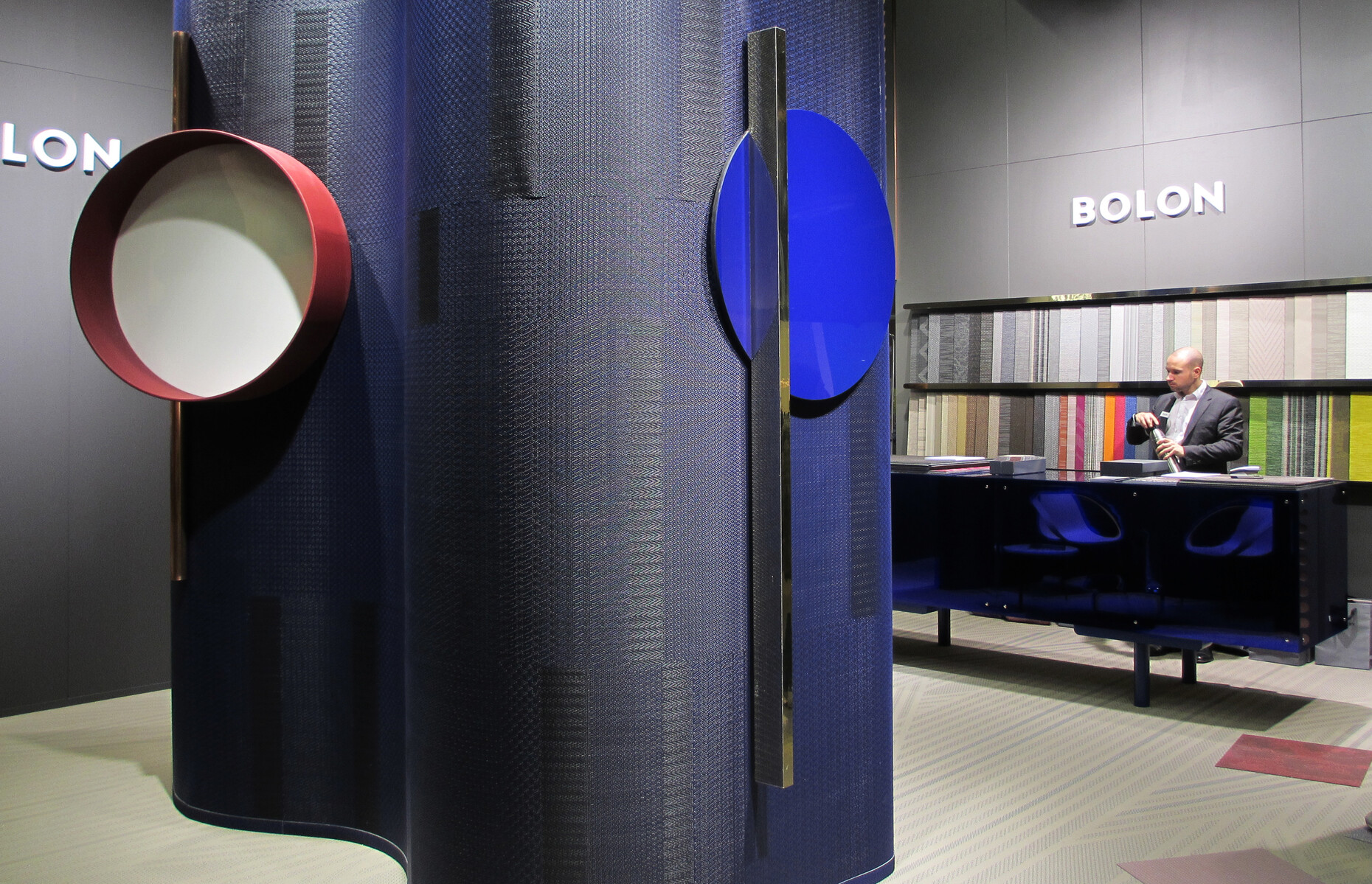 While subdued tones dominate with the Brits at their exhibition stand, things look more colorful at the other booths. The floor coverings by Swedish manufacturer Bolon and German firm Object Carpet boast diverse patterns and huge variation. At Bolon all production steps take place in the factory in Sweden and the waste products from fabric production are recycled on site in the firm’s own plant. The two-layer flooring is made from equal parts of recycled and new fibers.