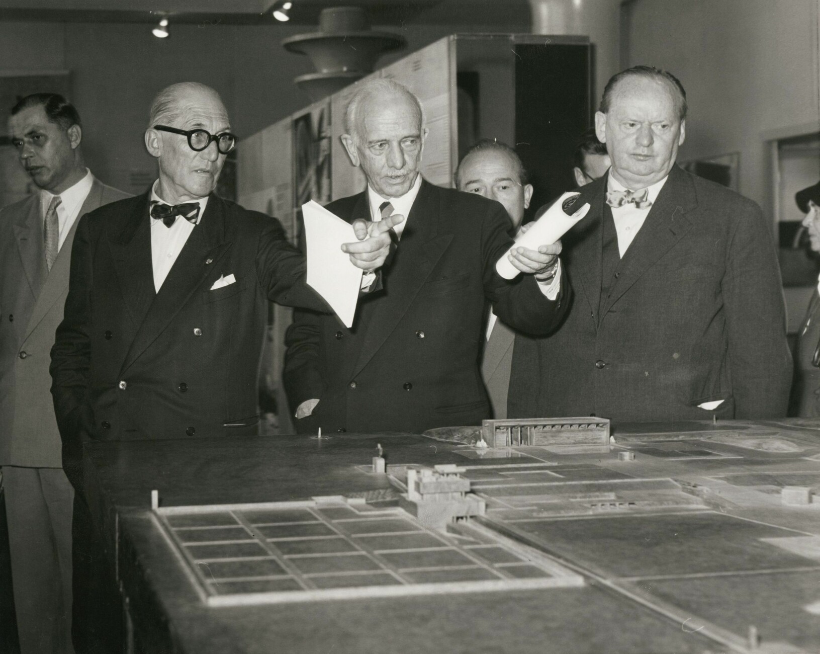 Anyone entering the Akademie der Künste in Berlin will hardly be able to overlook Otto Bartning (1883-1959) anyway. Not that anyone notices: The central, curved road leading from Hansaplatz right through Hansaviertel to S-Bahnhof Bellevue will be walking down Bartningallee. The name was chosen in enduring recognition of Bartning’s central role in the planning for the Interbau 1957, as he certainly did not design a building anywhere round here. That is something he diplomatically left to his far more famous colleagues, for whom he created a clear urban planning framework, however. It is tellingly symbolic that “his” road as the basis for the development leads past buildings designed by the likes of Oscar Niemeyer, Egon Eiermann or van den Broek and Bakema. Bartning was the hidden driver behind things; and also the one who set the task and decided the fundamentals.