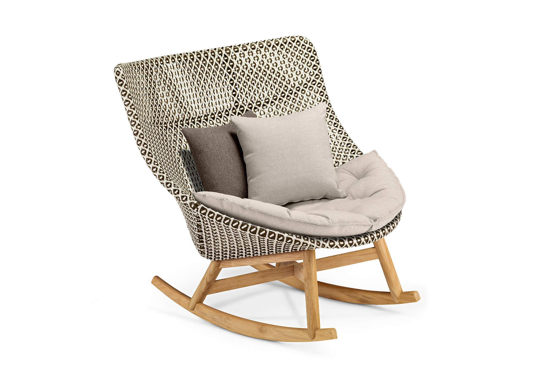 If it is possible to attach a swing chair to the balcony ceiling or a large tree in the garden then you should not think twice about it. The “Leyasol Swing Seat Outdoor” by Birgit Hoffmann and Christoph Kahleyss for Freifrau is ideal for dynamic phone calls. MUT Design brings back the flair of the 1970s with the artfully woven rattan swing chair “Nautica” for Expormim. Those who prefer a classic rocking chair should look no further than Dedon: “MBRACE” by Sebastian Herkner is a woven seat shell on a teak rocker base. The generously proportioned backrest and seat come with a loose cushion. A chair that is so comfortable to use has great potential to become your new favorite place while you work from home.