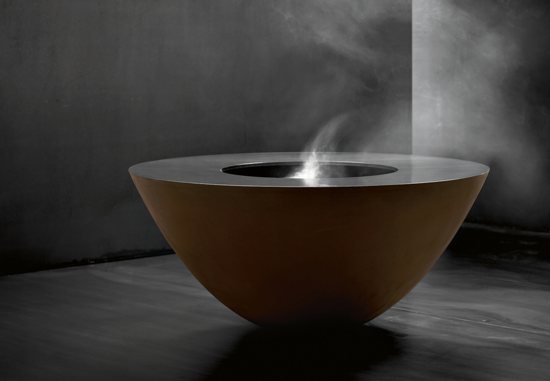 While working from home how would it be to prepare your lunch not in your own kitchen but in a fire pit like "Feuerring”. Sculptor Andreas Reichlin came up with the elegant design of steel that provides a broad area for cooking and grilling. If the fire is out then the fire pit on the terrace or in your garden serves as a sculpture and singing bowl. If your preference is for a mobile fireplace is wanted you might opt for “Roll Fire” by Sieger Design for conmoto, which operates on bioethanol. It can also if desired be wall mounted on a bracket.