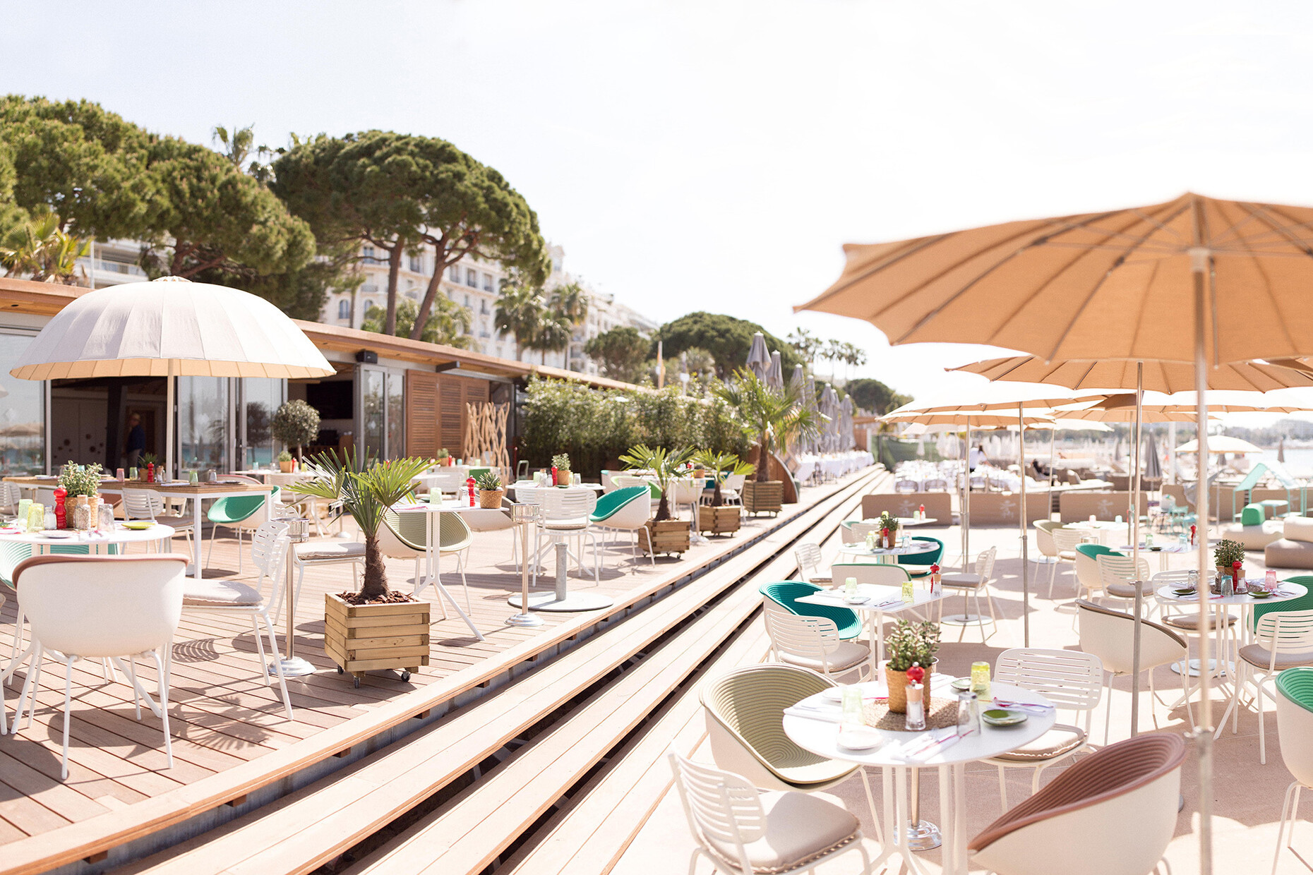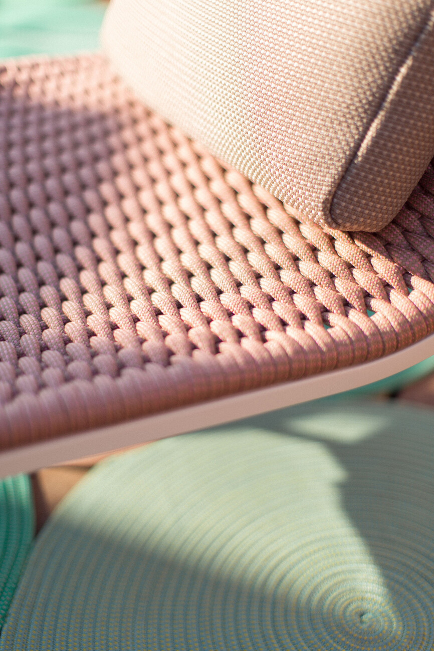 Cannes and Monte Carlo are two points on the French Mediterranean coast whose very names conjure up images of grandeur: Both locations are not only popular holiday spots among high society, but also set the stage for international events: While Cannes hosts the international film festival every May, Monte Carlo is the setting for the Monaco Yacht Show every year in September. Italian design label Paola Lenti is currently represented with its colorful outdoor furniture in both locations. In Cannes, diners in the outdoor area of the exclusive restaurant 3.14, lying right on the beach, can relax on the square “Hopi” poufs. With a variable backrest, these can be adapted to make the guest as comfortable as possible. Meanwhile, drinks can be placed on the “Heron” side tables, and the handwoven outdoor rug “Jali” enhances the homely character of the overall arrangement. The rug is made of the new “Twiggy” yarn by Paola Lenti, which is surrounded by a thin, transparent coating that renders it waterproof.