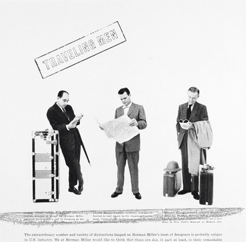 „Travelling Men“ with George Nelson, Charles Eames and Alexander Girard (f.l.t.r.), source: Vitra Design Museum