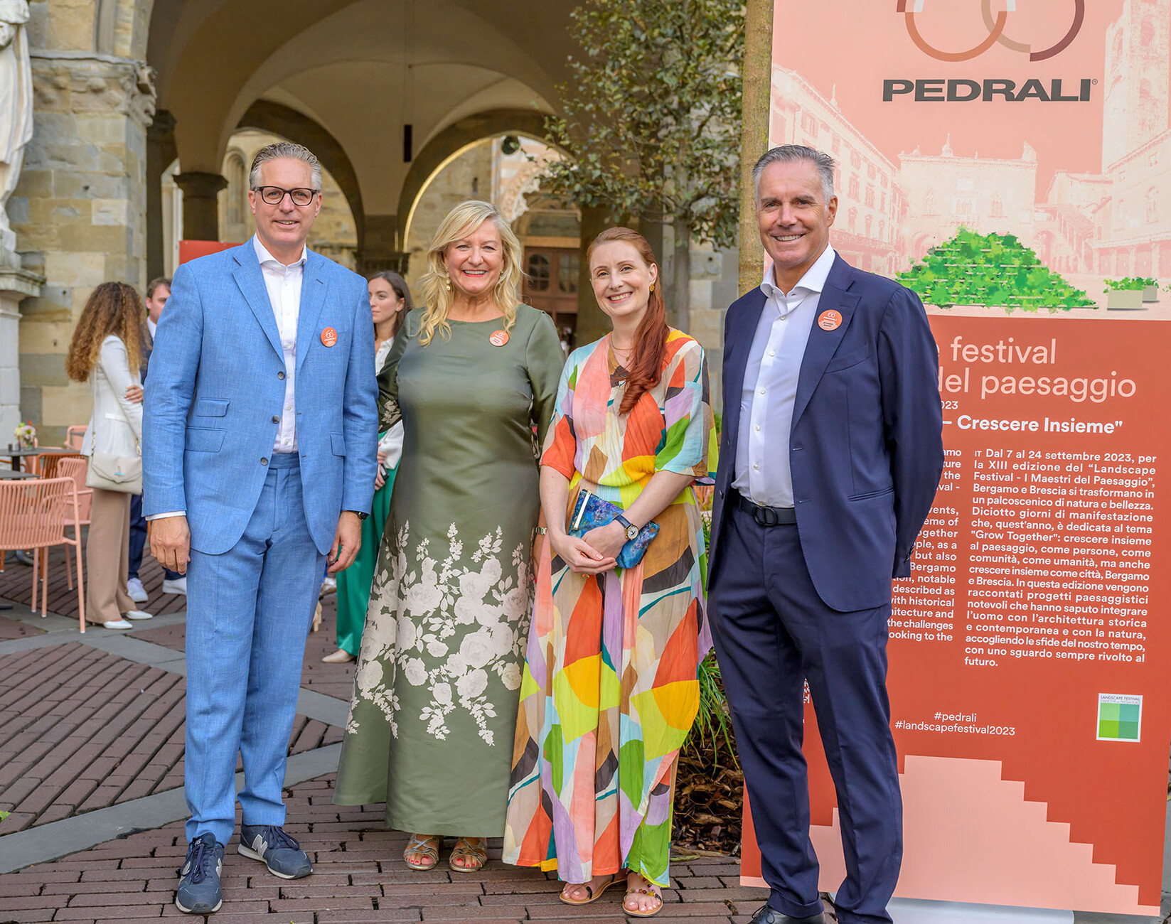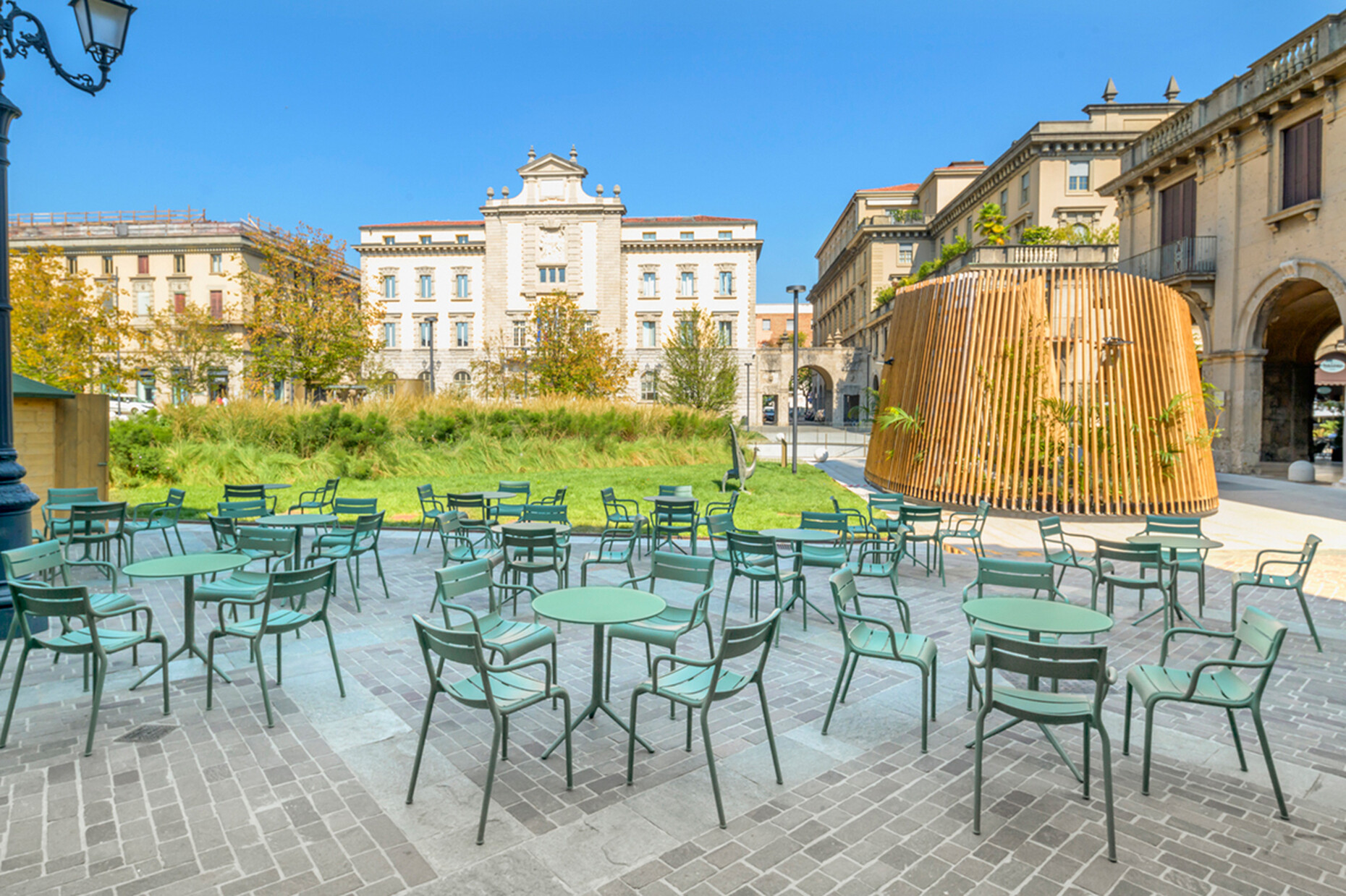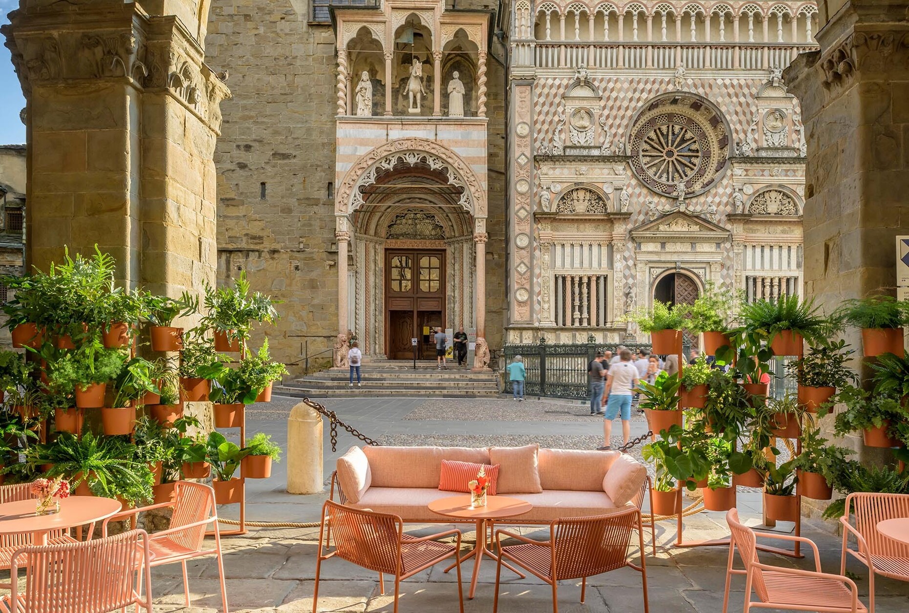 The theme of sustainability, which has always been a guiding principle for the family business, was likewise visible in the diverse display, as it has been for the organisers of the landscape exhibition – the Associazione Culturale Arketipos, the city of Bergamo and the Lombardy region: These included the presentation of seedlings of typical Lombardy forest species on reusable metal frames. "We shape a better future" is Pedrali's guiding principle, which they underlined in an expressive way with the outdoor event in the heart of Bergamo.