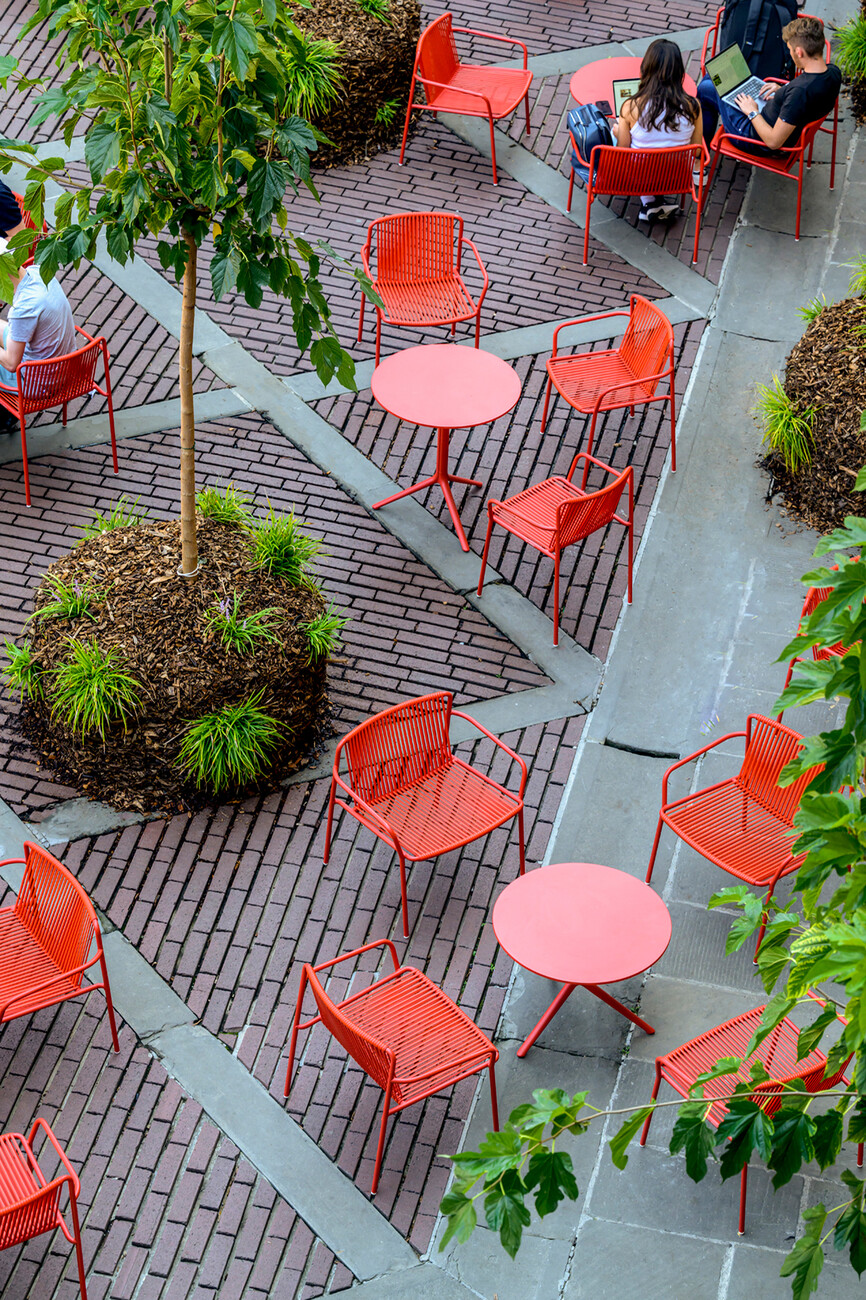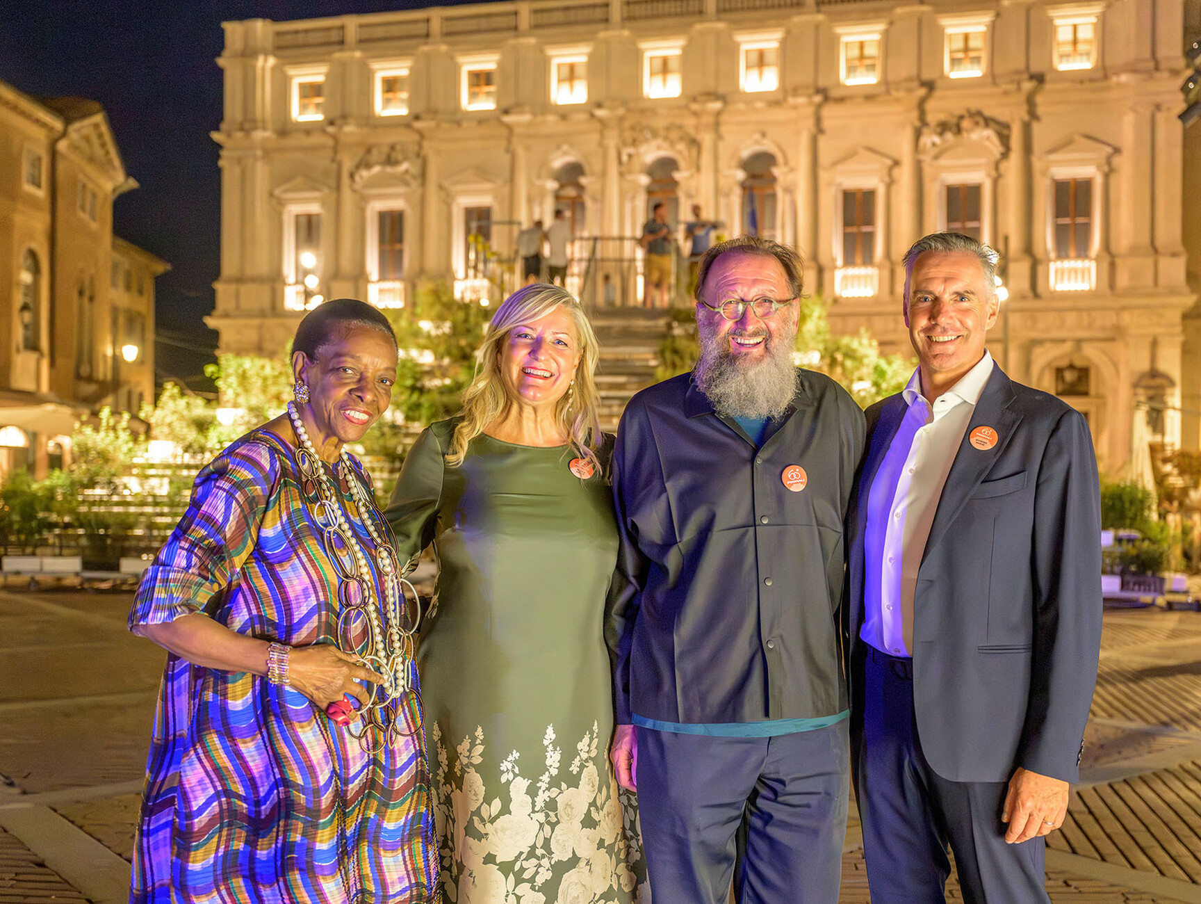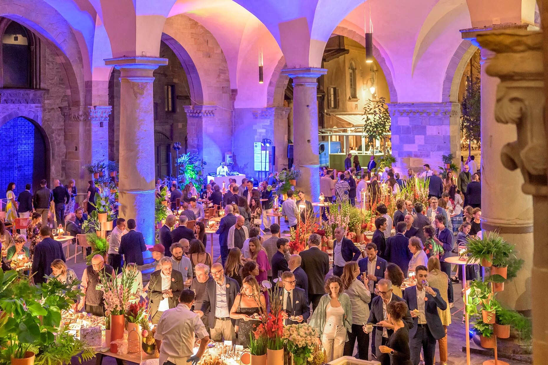 The setting could not have been more perfectly chosen, as Piazza Vecchia in the historic centre of Bergamo offers an architecturally impressive scenery that was completed in the 15th century and has lost none of its charisma to this day. At regular intervals, it is also the centre for the I Maestri del Paesaggio festival, whose ideas for sustainable landscape planning are supported by Pedrali. "Grow together" was this year's motto, which translated seamlessly to the community: The Pedrali family brought together great names from the design and architecture scene, such as architect and designer Michele De Lucchi, who designed the wooden Pedrali Pavilion together with his team from AMDL Circle to mark Pedrali's 60th anniversary, or Marva Griffin Wilshire, the founder and curator of SaloneSatellite, the most important international platform for young designers. In a relaxed atmosphere, the guests were able to celebrate together, make new connections and strengthen existing ones. Seating was provided on outdoor furniture by Pedrali, both under the arch of the Campanone, the historic city tower, and by the Antico Lavatoio, the old washing fountain, as well a historic landmark in the city.