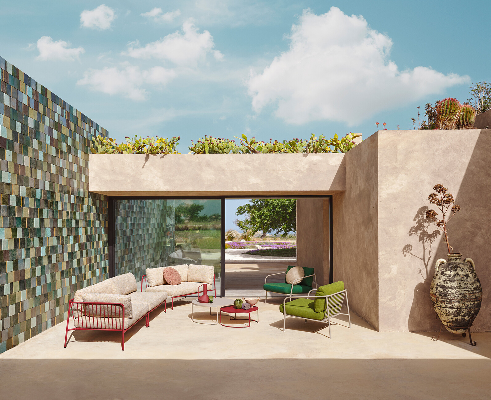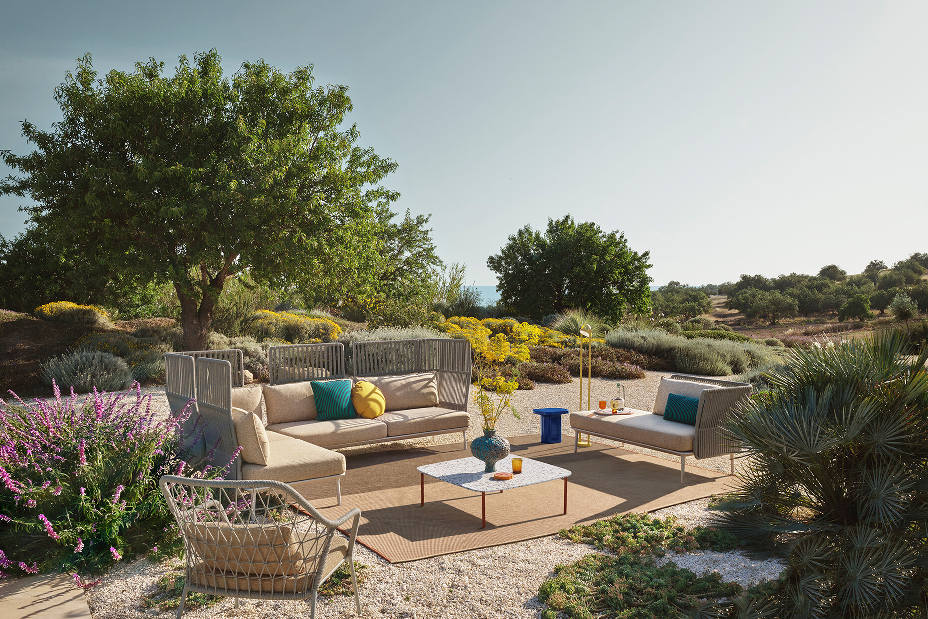 When the evening dawns, the last rays of sunshine are best enjoyed in a sheltered nest in front of sun-warmed tiles: There, "Nolita Sofa" awaits you as a reminiscence of the company's tradition, which was started by Mario Pedrali in 1963 with metal chairs for the garden. Its metal frame is covered with polyester upholstery protected by a waterproof layer of polypropylene fabric. For the "Nolita Relax" version with greater seat depth, CMP Design has also adopted the joyful character of the first garden chairs with simple as well as classic shapes. Sitting here long into the night, it's the perfect place to listen to the crickets playing their night concert and count the stars. (eb)