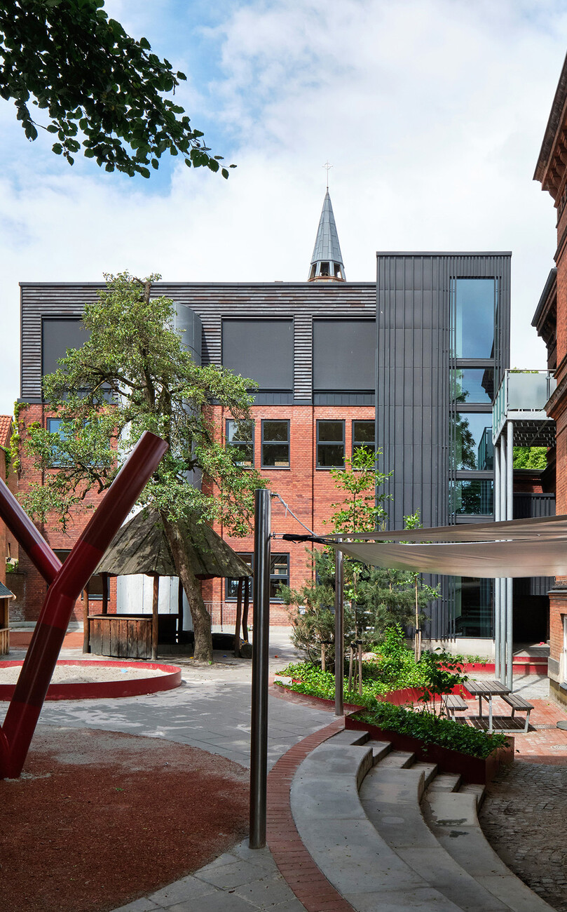 The Elise Smith Skole in Aarhus impressively demonstrates how contemporary architecture can be sensitively and confidently integrated into historical structures. A well-thought-out design and a bold solution combine respect for the existing building with the requirements of the present day – both functionally and aesthetically. The result is a building that blends harmoniously into its surroundings while speaking its own architectural language – understated and confident at the same time.