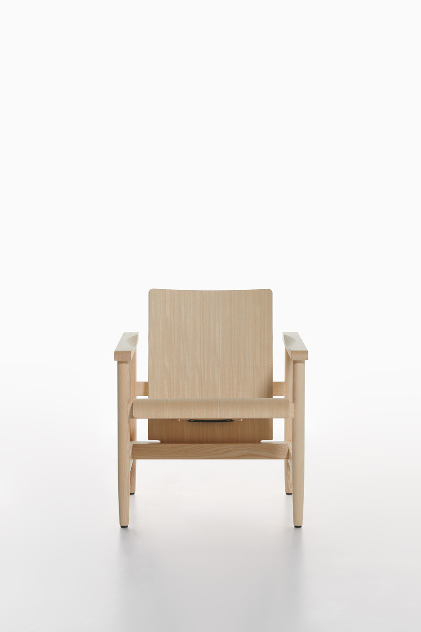 ‘Sol’ is the sister of ‘Sombra’, two lounge chairs that were deliberately designed as a pair, yet offer different characters. “Sol” is compact and agile, while ‘Sombra’ appears generous and relaxed. Both models are made of solid ash wood – a durable material that also has historical references. The vertically aligned legs and strictly horizontal armrests create an open feeling of space and give the furniture a calm presence. Details such as tapered foot ends and hollowed-out armrests emphasise the handcrafted character of the designs," says Konstantin Grcic in an interview with Stylepark. Thanks to Sol's compact footprint, it allows for a low but active sitting posture. The connections of the lounge chair are plugged and screwed together to allow the individual parts to be replaced at any time. Available in natural lacquer or stained lacquer in black, brown, ocean blue and fire red, ‘Sol’ fits into any spatial context.