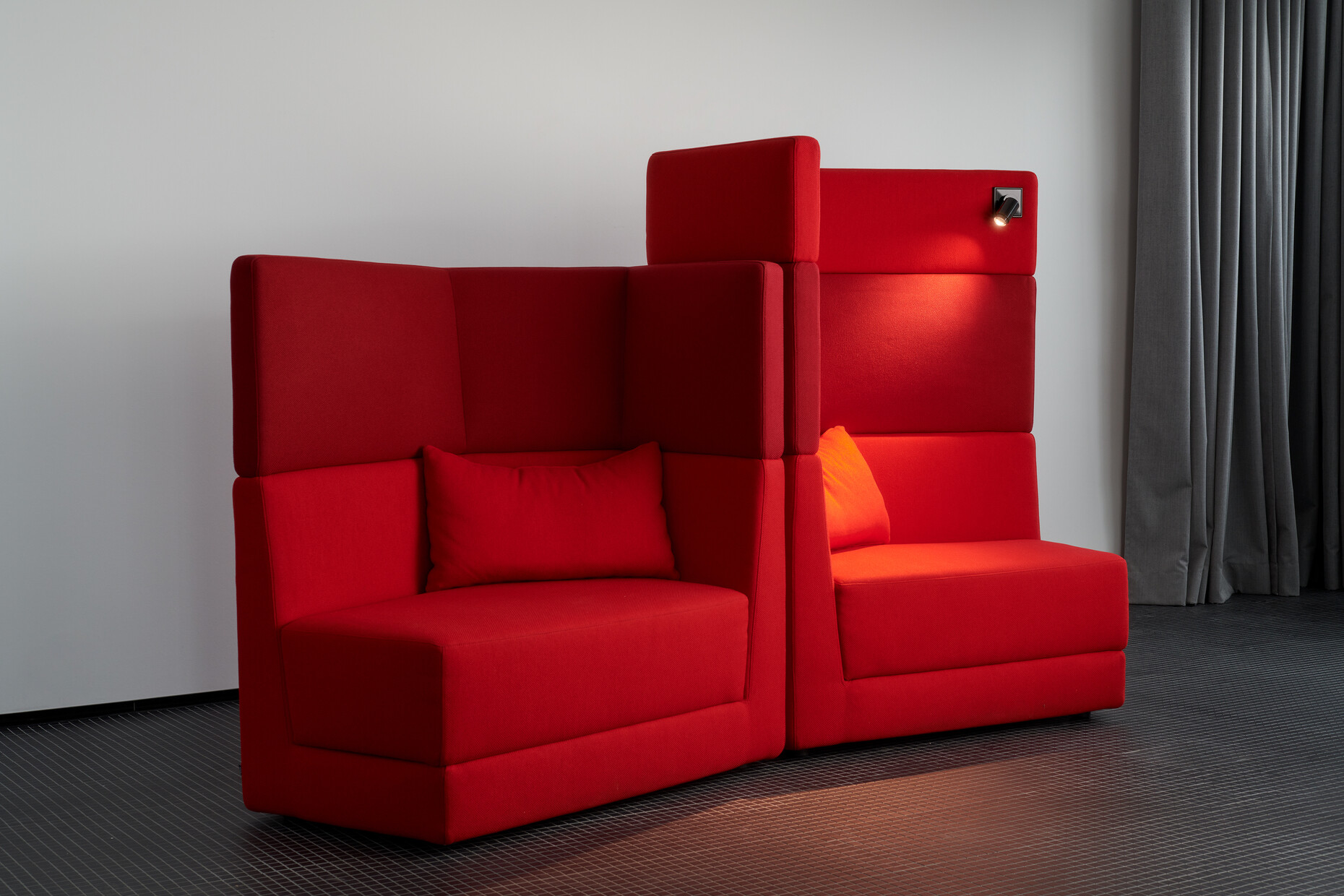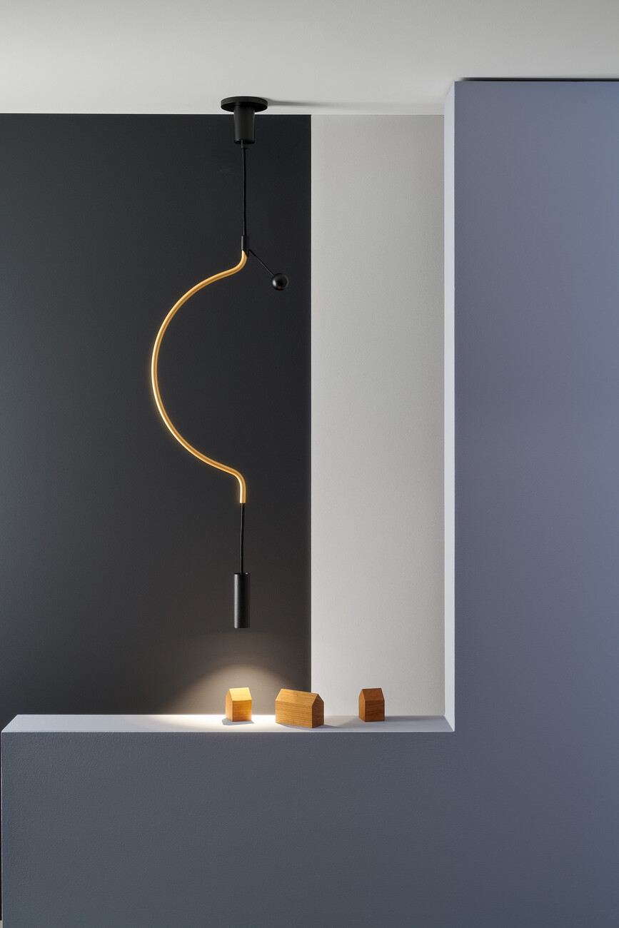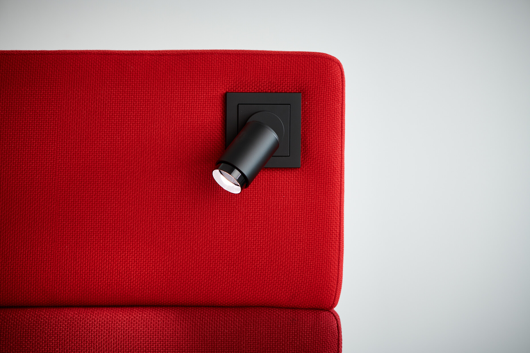 “Plug & Light was from the very outset conceived of as an open network that thrives on flexibility and diversity,” explains Christina Lindermann, Business Development Manager at Insta. As a result, the design focus of the new luminaires for Plug & Light cuts across the entire creative spectrum: Axolight joined forces with designer Sara Moroni to advance the lighting sculpture “Liaison” – formally it relies on a soft arc that dynamically remains in balance. COR integrated Plug & Light into the fittings for its “Scope” seating – the elements of the latter can be swiftly and efficiently transformed into islands for meetings or for concentrated work. Grossmann has actually devised an entire series: “Connect”, which is made of colored anodized foamed aluminum, boasts ceiling, wall and pendant luminaires. The shades and reflectors can be changed at will to fit new requirements. Moreover, thanks to the large selection of brushed metal surfaces and colors, the luminaires can be individually adapted to the respective interior. The idea that Ingo Maurer came up with encourages playful joy and hinges on an entirely new design concept for Plug & Light: “Orbittu” has a swiveling, oval reflector sheet in warm orange that reflects the light directly or indirectly – depending on which side is turned to face the lamp. Nyta has entered the collaborative effort with not one but two different fittings that spell advances to both “Pong” (a pendant luminaire) and “Tilt Wall” (a wall-based luminaire). With its semi-circular share and minimalist form, “Pong” distributes light pleasantly across a room, while the funnel-shaped “Tilt Wall” can simply shine light in whatever direction is desired as the funnel can turn on its own axis. SG Leuchten has chosen its purist pendant luminaire “Tube” for the project: The cylinder shape with its clean lines focuses the light carefully, whereby the range of interchangeable front rings allows precise accenting. “The manufacturers were free to design the products as they wanted, which is why the joint results range from luminaires with pared-back forms right through to light art,” Lindermann suggests.