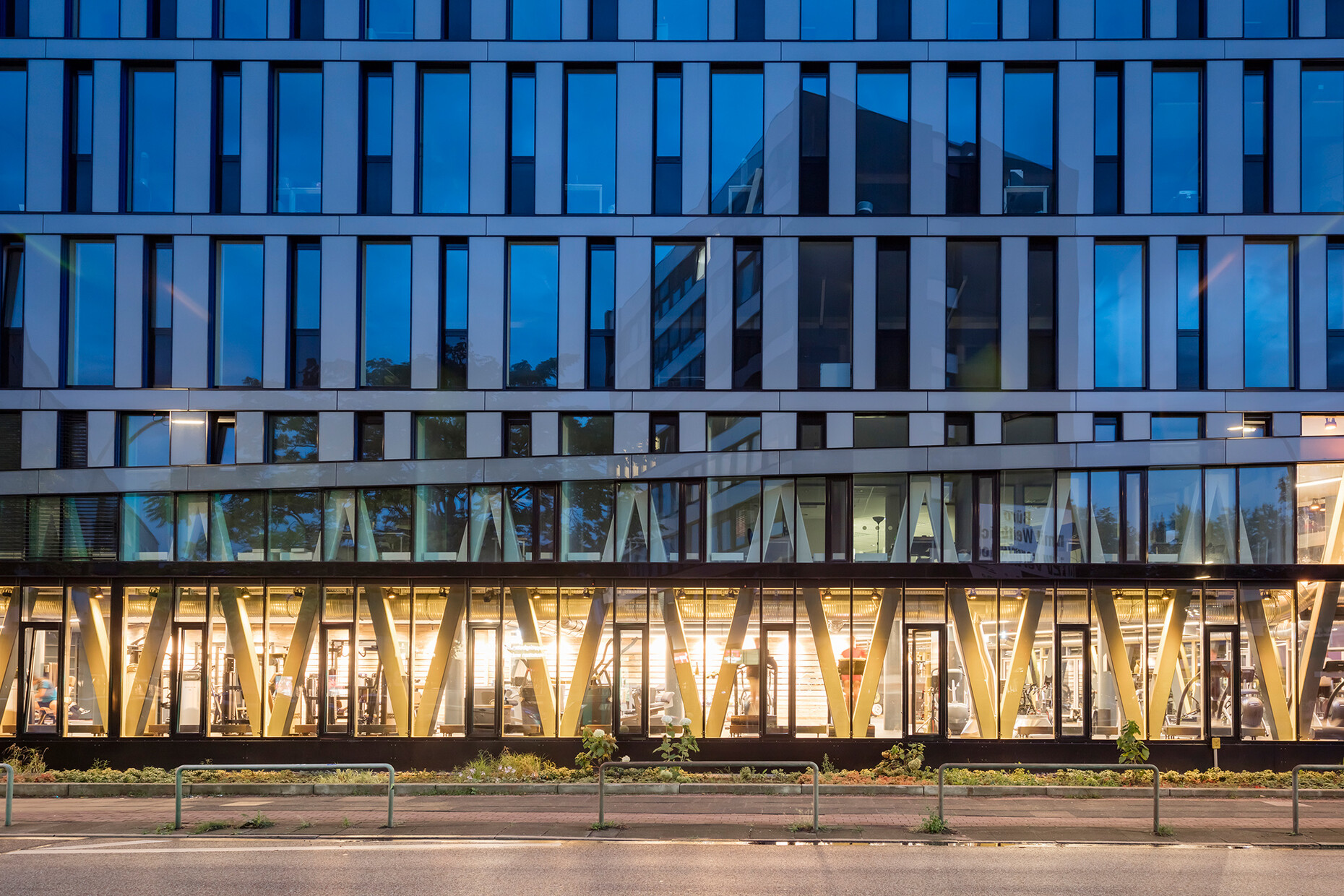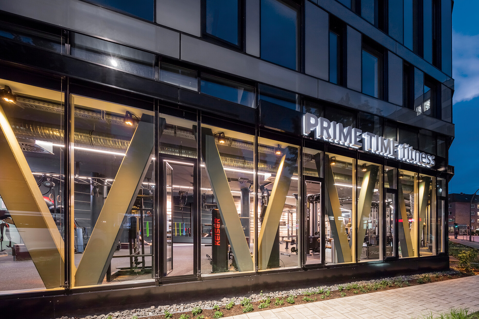 "We position ourselves as a premium training provider. Our members expect a correspondingly high-quality ambience," says Managing Director Nils Kuprat of the Prime Time fitness club concept. This also applies to the fitness club chain's new branch, which is prominently located on the groundfloor of an office building in Hamburg-Winterhude. The building complex, designed by Bothe Richter Teherani in 2005, rises like a ship's bow from the urban fabric with its V-shaped supports and opens up to the urban space thanks to a generous glass facade on the groundfloor. Inside, Proled 's digitally networked lighting technology in the form of precisely guided light lines creates a special atmosphere in the Prime Time Fitness Club.