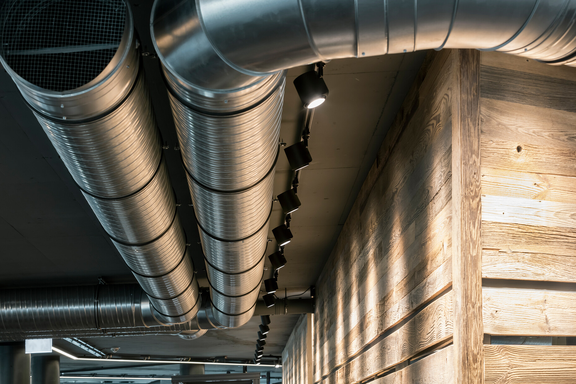 "We wanted soft, uniform light on the training areas without delineated light cones. On the other hand, we don't want our members to feel like they're on display during training, despite the glass facade," says Managing Director Nils Kuprat about the lighting concept. For this reason, the illuminance on the training areas is somewhat reduced, while the wood-clad rear walls are powerfully accentuated by the "Alliance spots" from UNI-BRIGHT, a member of the Proled Group. This accentuates the spatial depth of the Prime Time fitness club when viewed from the outside, while the training guests are only perceptible as silhouettes in front of the illuminated back walls. The warm white tones and color rendering in the light lines further help to make the workout guests look good. Thanks to the integrated DMX control, the balance between general and accent lighting can be readjusted at any time. The system also controls the RGB stage lights, which can be used to bathe the supports of the facade in a colorful light during temporary events. In interaction with the pipes and installations of the ventilation technology, this creates a futuristic, technoid aesthetic that gives the fitness club its special atmosphere.