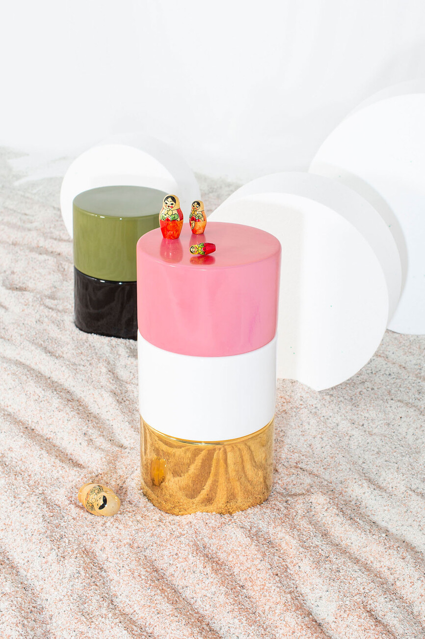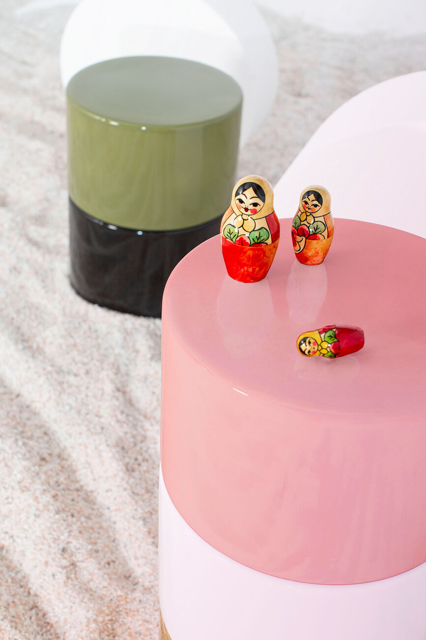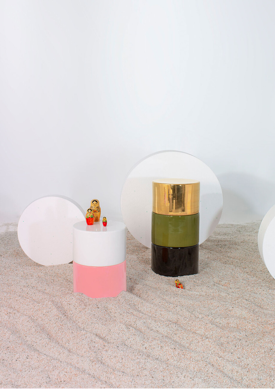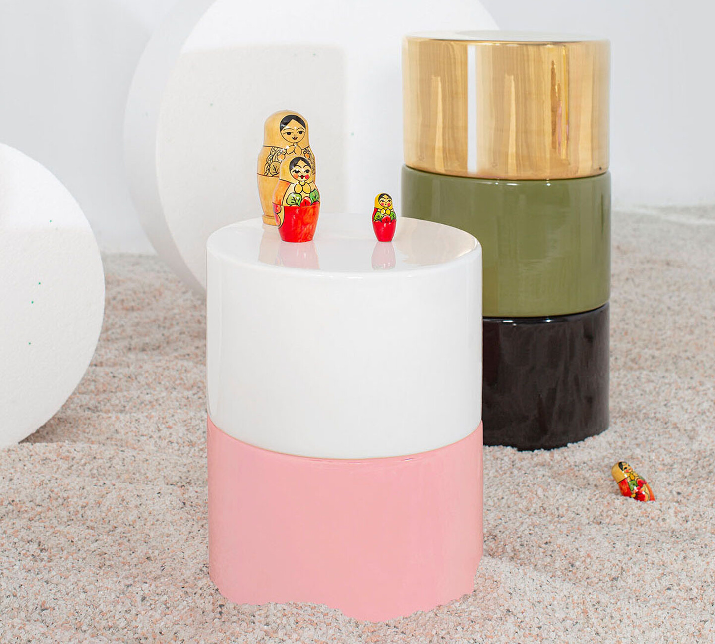 Sebastian Herkner pays homage to the painter and sculptor Imi Knoebel with the handmade ceramic "imi" side tables for pulpo.