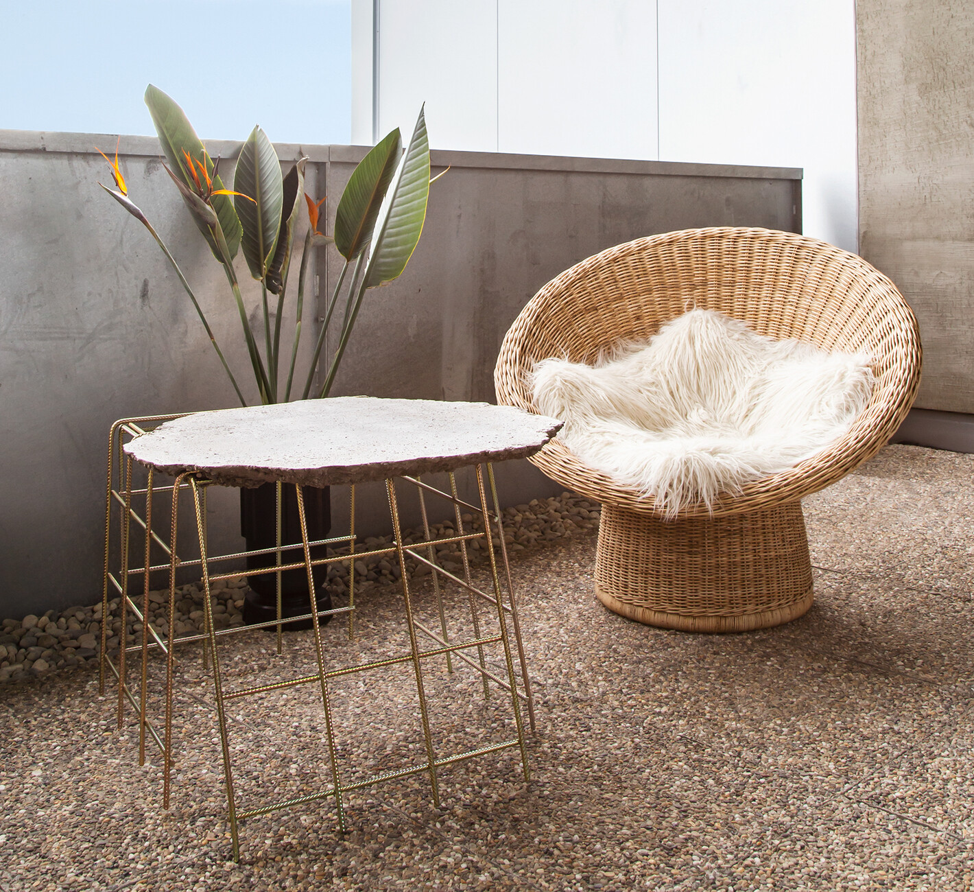 “You need to be able to master handling the accidental,” says Samuel Treindl. The performative works of the artist and designer are always in flux. About to become something, shifting from one shape to the next. An interim state, which looks temporary and is nonetheless a statement in itself. Central to process art is interaction with the material, revealing the transformation. And in this case Treindl explores for pulpo how concrete reacts when it falls to the floor. This involves mixing the material and pouring it onto a smooth surface to harden. If you subsequently turn this blob around, then this strange accumulation of construction materials has morphed into a tabletop. The tabletop is supported by galvanized steel mesh construction matting bent to form a base. At this point the experiment becomes an object with a function, a one-off with raw charm for interior design. By placing the chance aspect of his artistic creativity into a design context that results in a functional product Treindl creates an interaction between commercial and anti-commercial elements.