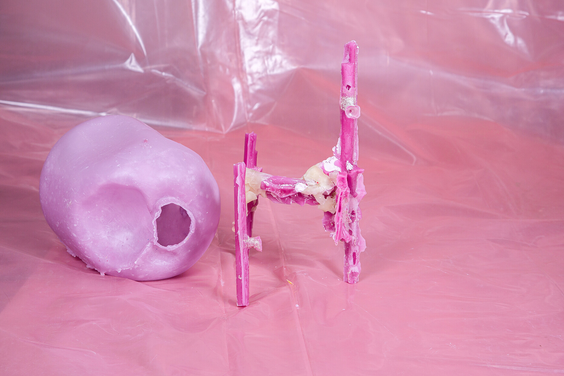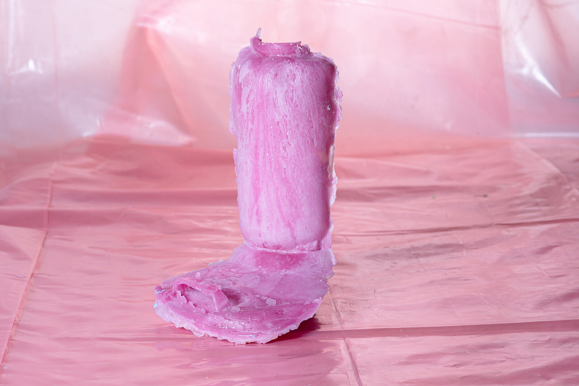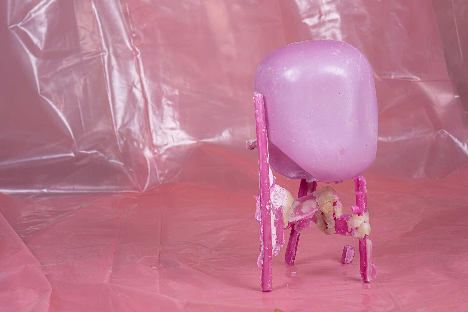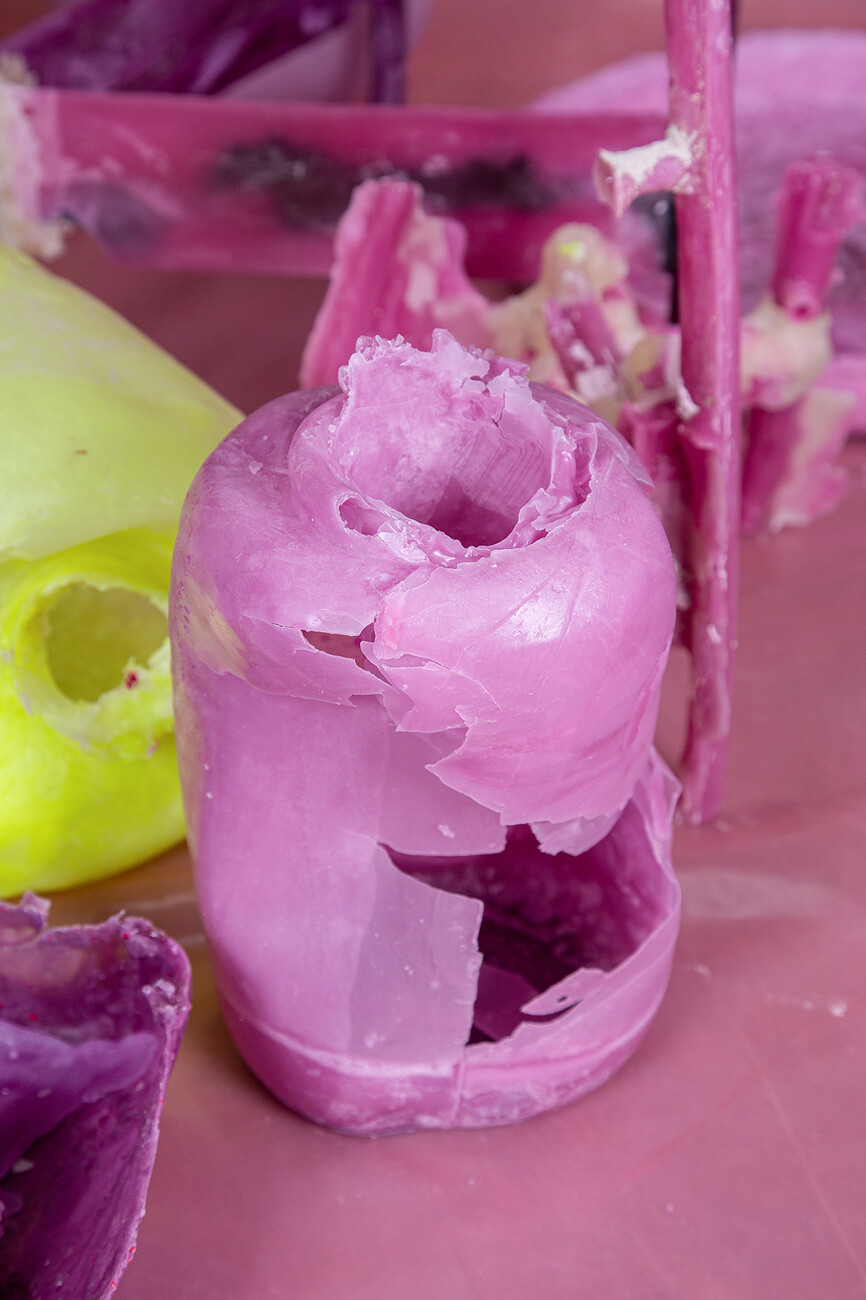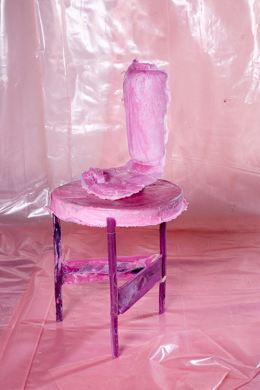 Letting processes happen, accepting a loss of control and instead gently guiding the material which anyhow has a life of its own and is subject to the force of gravity; this letting go is a challenge Treindl has also taken on for the first artist‘s edition of the pulpo catalog. For the performance the products of the portfolio such as “Container”, “Alwa” or “Oda” by Sebastian Herkner, were covered with molten wax which Treindl then let harden, thereby producing fragmentary objects, whose original form is only vaguely recognizable. These represent a homage to the designer, but also form a fascinating contrast to them as regards the requirements that they are constantly expected to meet. While the design object would ideally like to be owned in a state that remains unaltered throughout its life, the structure, color, feel and lifespan of its rudimentary moldings in wax cannot be influenced. “The idea was to mold the design object in a fragmentary fashion in a different context so as to create a reminder of sorts of the original state,” says Treindl. And in doing so intervenes in the hierarchical pyramid of material and final product as with the refinement of the steel mats in the production of the side table. While in that case he declares the material the final product the final product for the “Wax Object Edition” serves him as material. As such, the figures created in this manner are temporarily present, lack any function beyond that of their mere existence, and readily oscillate between the worlds of design and art. “Letting go is the operative word,” says Patrick L'Hoste.