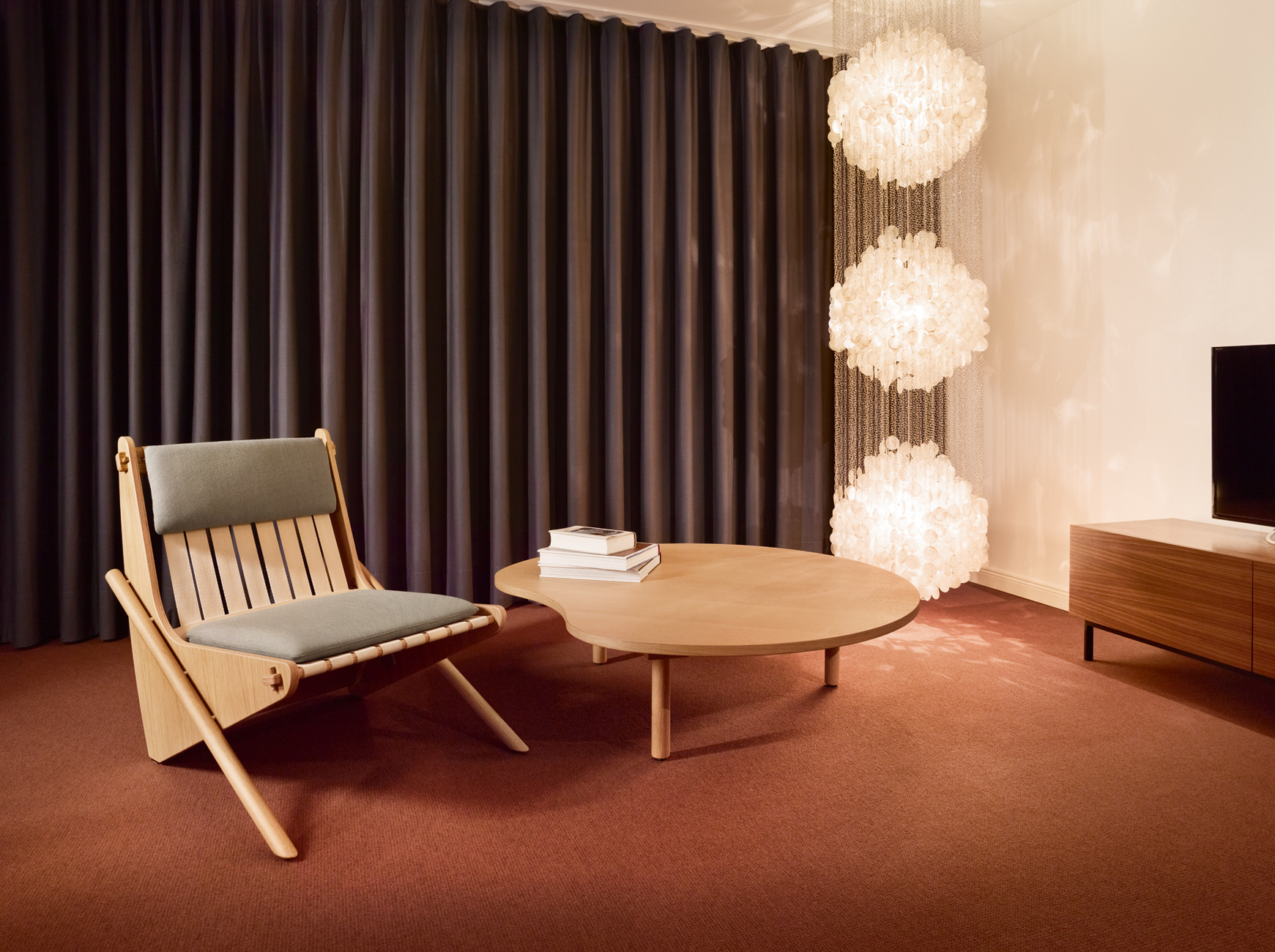 Kaune has provided the 34 guest rooms of the hotel temporarily for a photoshooting of the Neutra Collection by VS. As the creative director of the project he placed the furniture with great thought in the 34 guest rooms of the former Cologne Municipal Archive built in 1897 – where they are skillfully combined with other design classics: In the foyer, the eye alights first on the “Alpha Seating Triple” sofa with a veneered body and an armrest on one side. Originally designed by Neutra as fitted furniture, the sofa also cuts a fine figure as a standalone with upholstery courtesy of Kvadrat. For the restaurant the choice was the “Tremaine Chair” with a tubular frame that Neutra created exclusively for his “Tremaine House” in California and which symbolized the timeless design of the “Martini Modernism” of early Fifties California.