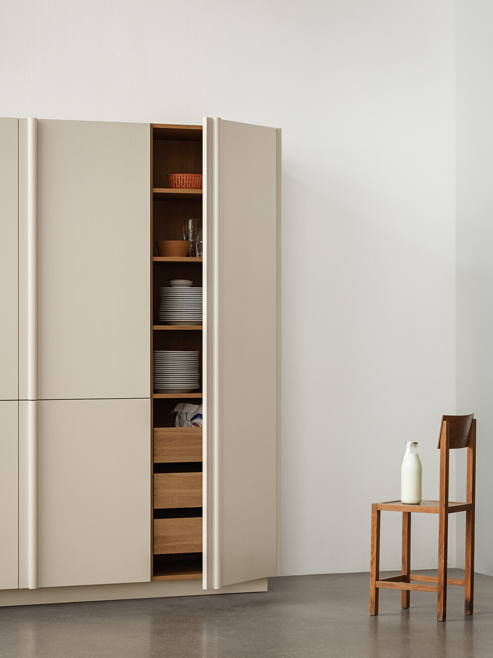 For "COLUMN", she combines a solid carcase with soft curves and rounded edges as well as a striking detail: a monolithic handle runs vertically across the front of each element of the kitchen. This not only serves to open the storage space, but also gives the shape a minimalist dynamic that fits into any interior design – even beyond the kitchen. "The most striking feature of a kitchen is its handle. That's exactly what I focussed on. My aim was to create something that wouldn't turn into a mere gadget, an imitation or something aggressive. It would be easy to create an intrusive, different kitchen and justify it under the guise of 'design'. My ambition, however, was to create something soft and smooth that still has a distinct personality," says the designer.