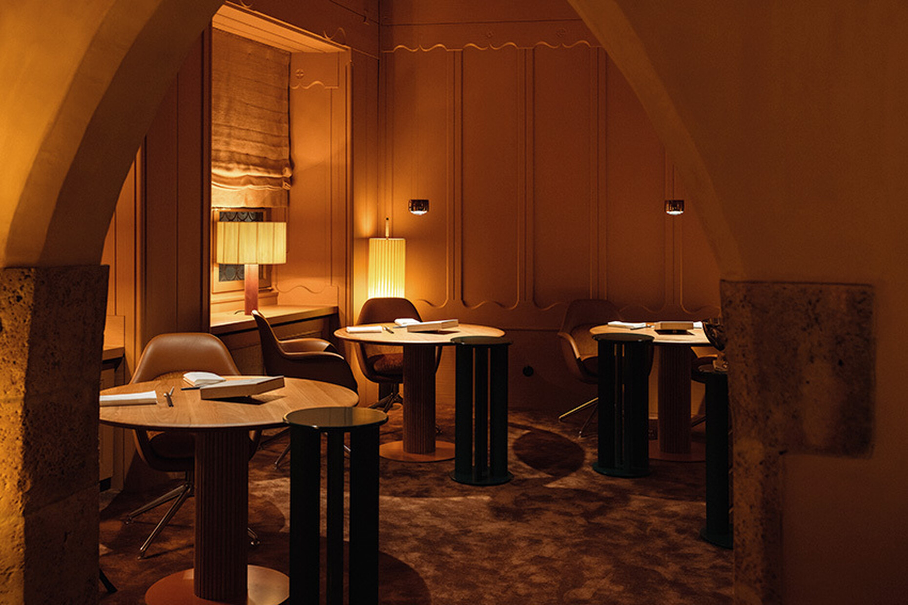 Daniela Wilke: Marc Uebelherr, a long-time client and the actual co-founder and partner of the Schreiberei, introduced us to Tohru Nakamura. The briefing was to create a feel-good place for Tohru and at the same time a star restaurant with maximum functionality. Tohru is a very approachable and inspiring client, so it was obvious to design a place that could be understood as a private dining room beyond a guest room. The real challenge was to conjure up atmosphere and a sense of well-being in the venerable and quite massive, listed walls of the former town clerk's office from the 16th century.