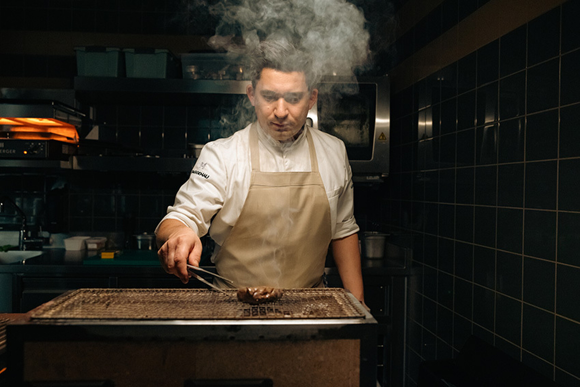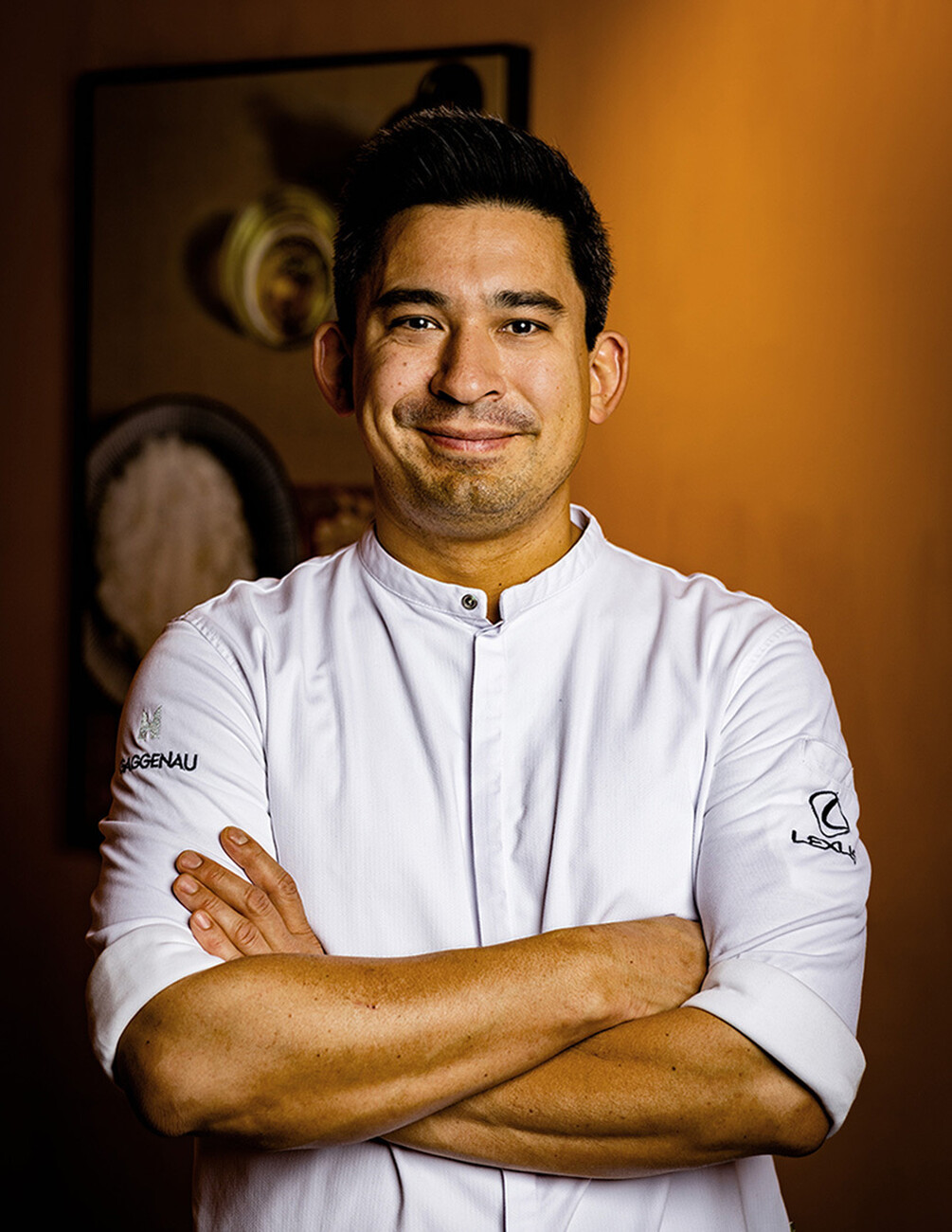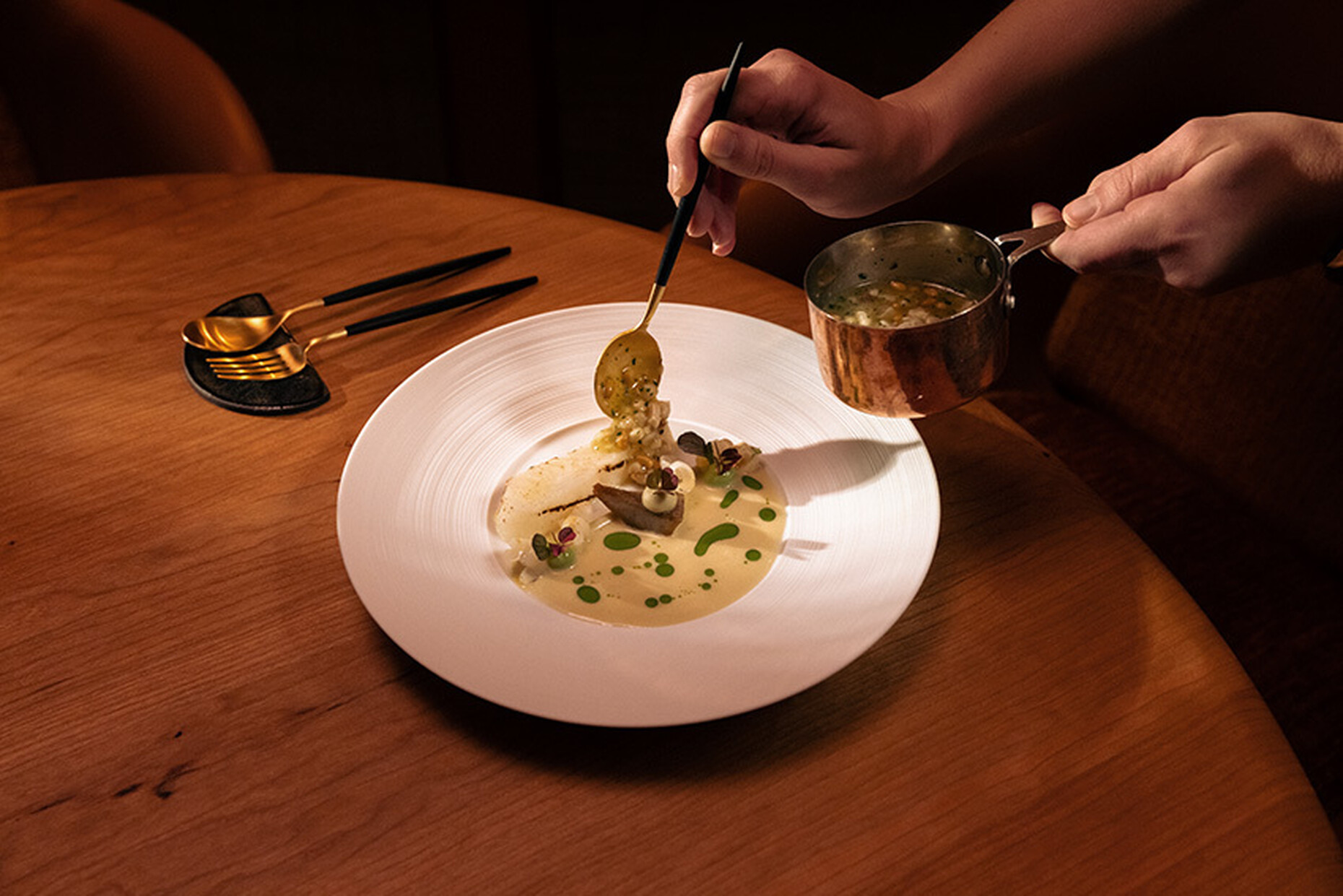 On three levels, Tohru Nakamura invites his guests to enjoy and, above all, to stay in the heart of Munich's old town: The listed town house from the 16th century offers the perfect setting for a relaxed aperitif on the terrace, a private celebration in the glassed-in wine cellar or a culinary journey where French esprit, Italian temperament and Spanish fire meet the precision of Japan. Upscale and unpretentious cuisine coexist here just as naturally as the theme of sustainability is woven into all processes. Not only do the ingredients come from the region as far as possible, but the choice of socially responsible and ecologically sustainable products was also paramount in the design, the wall paint, the woodwork in the interiors as well as the crockery and every single piece of furniture.