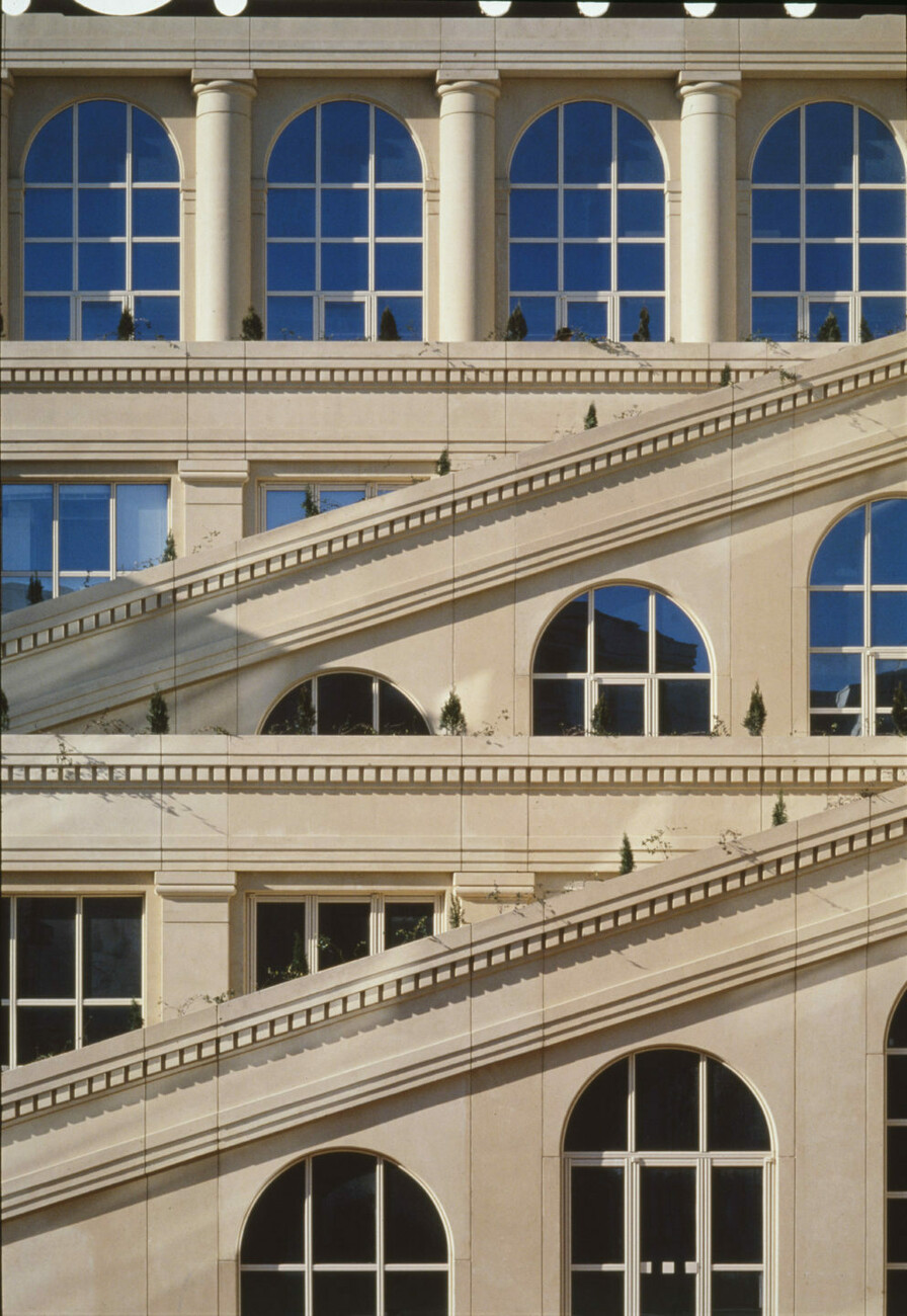 Ricardo Bofill was a collector: he gathered architectural elements, both out of the historical architecture of his native Catalonia and from his travels to the oldest cities in the world – across Africa, Asia and Europe. His visionary works are attributed to postmodernism, but thanks to the wide range of architectural styles that inspired him, his œuvre transcends any categorisation. Instead of submitting to a trend, he created buildings that were always ahead of their time. He invented labyrinthine structures and imposing interlocking structures that seem surreal and rational alike. Bofill achieved this by referring to the places where his architecture was created. Provided organically shaped spaces that are accessible on a spiritual level beyond their function. Like a city within a city, many of his over 1000 works offer flexible modules for social togetherness as well as social integration. Thanks to numerous terraces, courtyards and windows, the boundaries between inside and outside become fluid. The compositions are not subordinated to a procedure, but serve the search for individual and idealistically conceived solutions. Palaces for the community, like the social housing "Walden 7" in the periphery of Barcelona or the apartment complex "La Muralla Roja" in Manzanera, Spain. He even knew how to integrate prefabricated components into his projects, such as for the apartment buildings "Les Arcades & les Temples du Lac" near Paris. With dynamic forms and a strong sense of colour, he set a fascinating alternative against the modular buildings. Its immense dimensions and staged exaggerations sometimes appear dystopian, their atmosphere fluctuates between light and dark. An effect that polarised and often made them a film set.