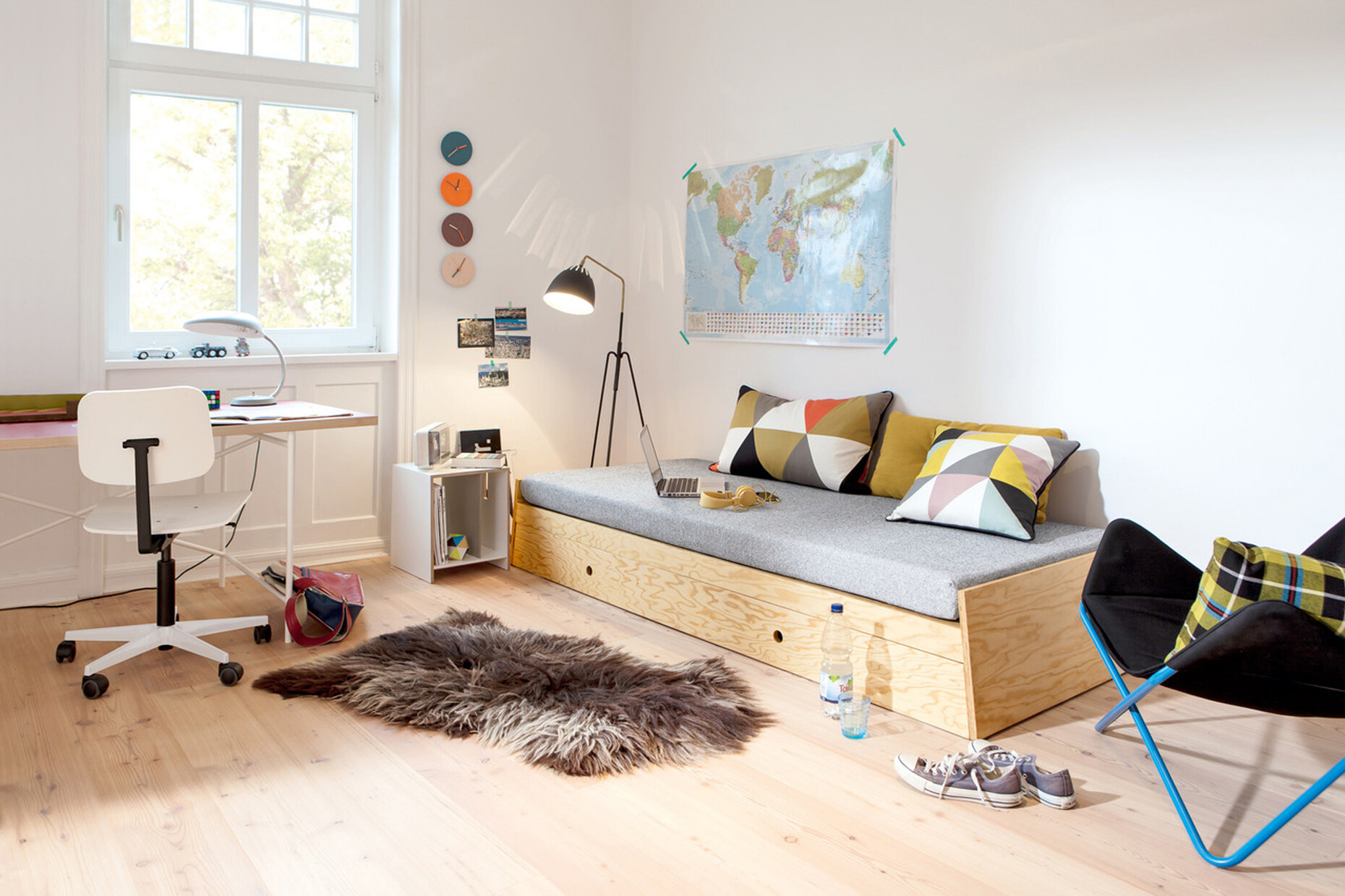 Richard Lampert: Well, “young” is relative (laughs). A designer needs a few years of experience under his or her belt for a collaboration to work well. One thing that interests me in this context is how you can get a fresh look at certain typologies. One good example of this is the stackable beds that I wanted to free of their 1960s “youth hostel look”. So, it was convenient that Alexander Seifried had already worked on this topic and was able to eliminate functional weaknesses. For example, in our version you don’t get frames cutting into your thighs and the beds can be used as a fully-fledged double bed or a single bed. Rather than a drawer Alexander Seifried had the idea of a sack that not only functions as storage but can also serve as an armrest or backrest. Collaboration with a designer typically works like this or in a similar way. It is only seldom that I see a design that immediately grabs my attention as happened with the “Prater Chair” by Marco Dessi. At the end of the day, there is a story behind every product. Every development through to mass production is different and it’s a challenge every time.