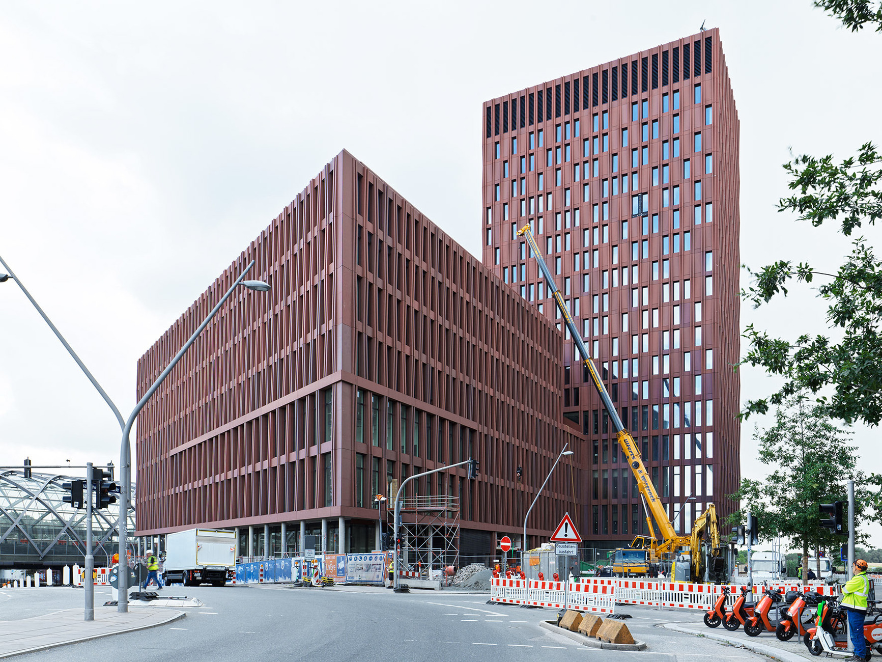 If you get off at the ‘Elbbrücken’ stop in Hamburg's new district, you can already admire the building: the future ‘PREVIER’ prevention centre rises 18 storeys into the sky and will be completed shortly. The dense, reddish façade looks a little different from every angle, light and dark at the same time. The individually designed building envelope made of glass fibre reinforced concrete by Rieder offers a total of six shades of red, which match the location in HafenCity in both form and colour. It is also a reference to the traditional red clinker bricks that were once the preferred choice of former Chief Planning Director Fritz Schumacher until his dismissal in 1933 during the Nazi seizure of power. With the uniformity of the solid material, he sought to restore the beauty of the old town as it was before the great fire of 1842. ‘A clear sense of space, uniform design of the building masses, uniformity in materials – these are the major urban planning principles preached by Hamburg, which was rebuilt after the fire,’ said Schumacher in his 1920 publication ‘Wie das Kunstwerk Hamburg nach dem grossen Brande entstand’ (How the work of art Hamburg came into being after the great fire). At the same time, there were no natural stone deposits near Hamburg, so the double-fired brick was also a convincing choice as a cost-effective building material. To this day, it still characterises the cityscape in many places and gives the cool pearl of the north a warm touch.