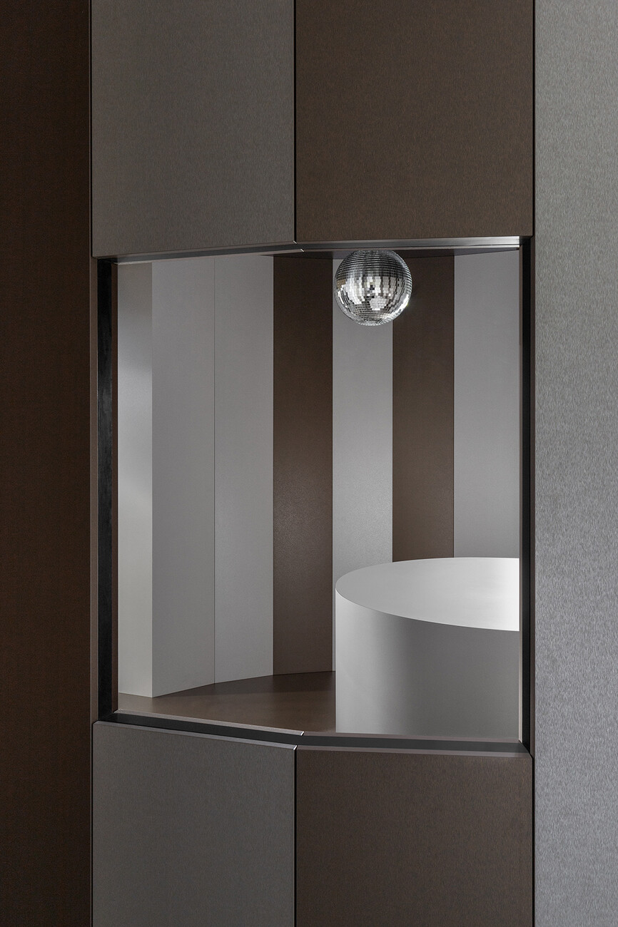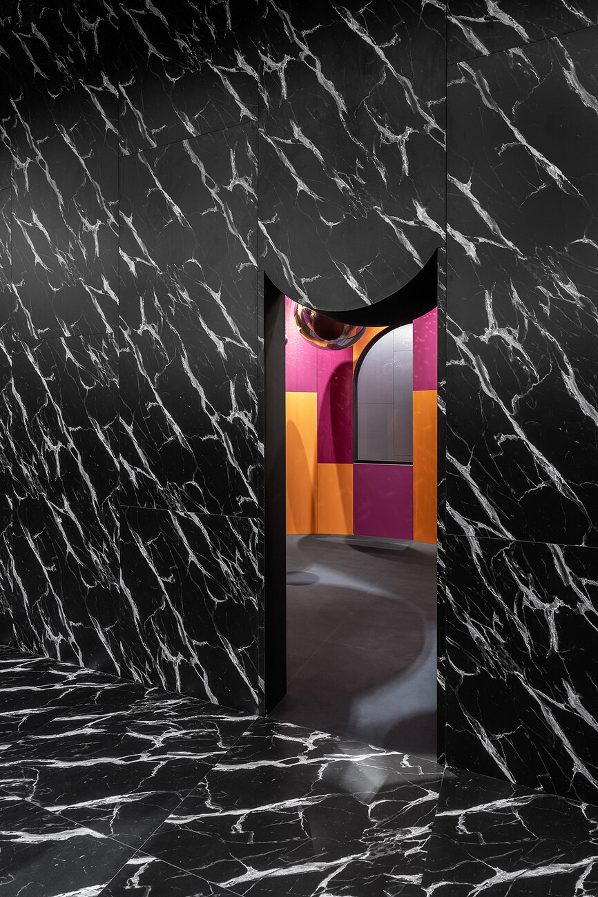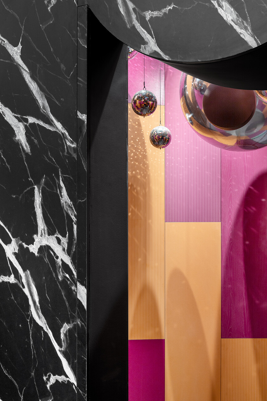 Roberto Caspani: Campos Costa Arquitetos were the winners of the first edition of “Shaping Surfaces”, a competition we launched in 2020 and that is aimed at architects around the world who use our surfaces when realizing their interiors. Campos Costa Arquitetos won back then with the “Banema Studio Concept Store” in Lisbon. The interior extends over a single floor and is defined by an unexpected installation made of our Yosemite textured surfacing. The prize for the winner is always supporting us in developing the most important projects of the year: the design of our corporate showroom and the exhibition stand at Salone del Mobile. Our discussion with founder Pedro Campos Costa and his team was fantastic and very enriching. We gave them the briefing on the topic of clubbing and the architects transformed our corporate showroom into a club as well as suggesting a new presentation for our products.