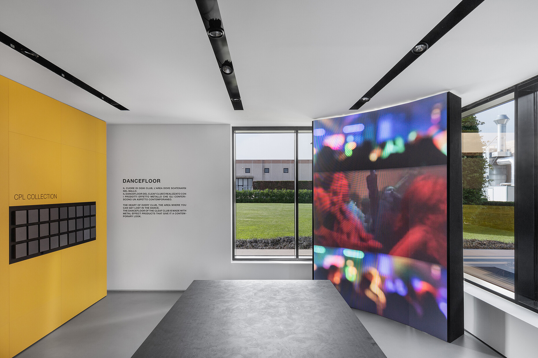 Roberto Caspani: The idea came about as a result of the pandemic: As clubs were forced to close it led to a crisis for the entire sector. Our aim was to pay tribute to clubs as the epicenter for experiments in the youth and contemporary culture. Clubs are places where there are no divides between music, architecture, fashion and design. Our customers appreciated the fact that we were meeting the need that we all felt: to get together again in a relaxed setting, to dance and have fun with friends. Our showroom is the place we invite our partners to every day – architects, furniture makers, carpenters, journalists, students – to present our products to them and give them ideas for their projects. The Cleaf Club represents the current climax of our range of offerings.
