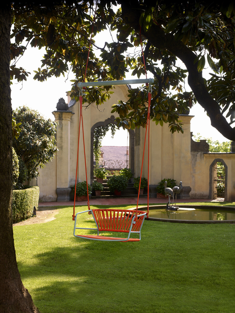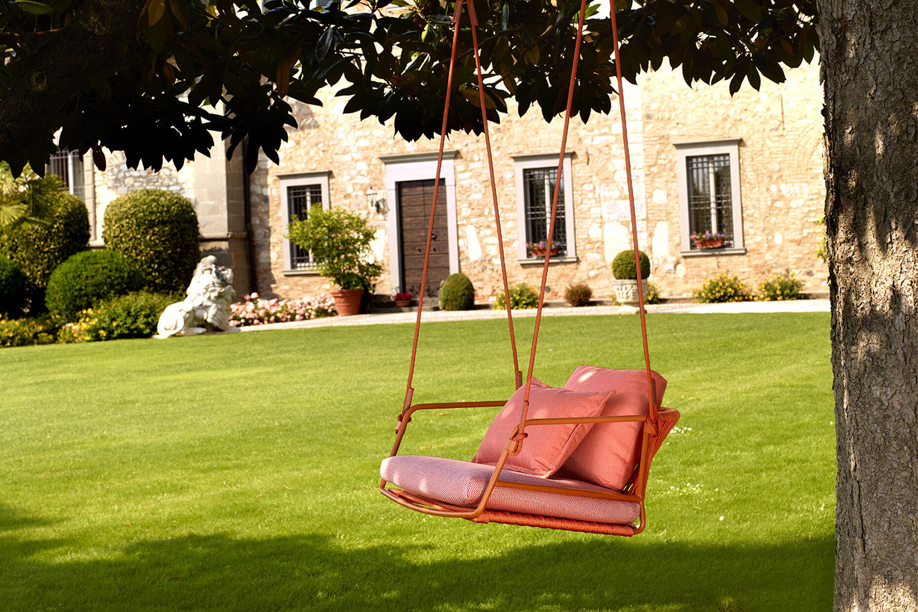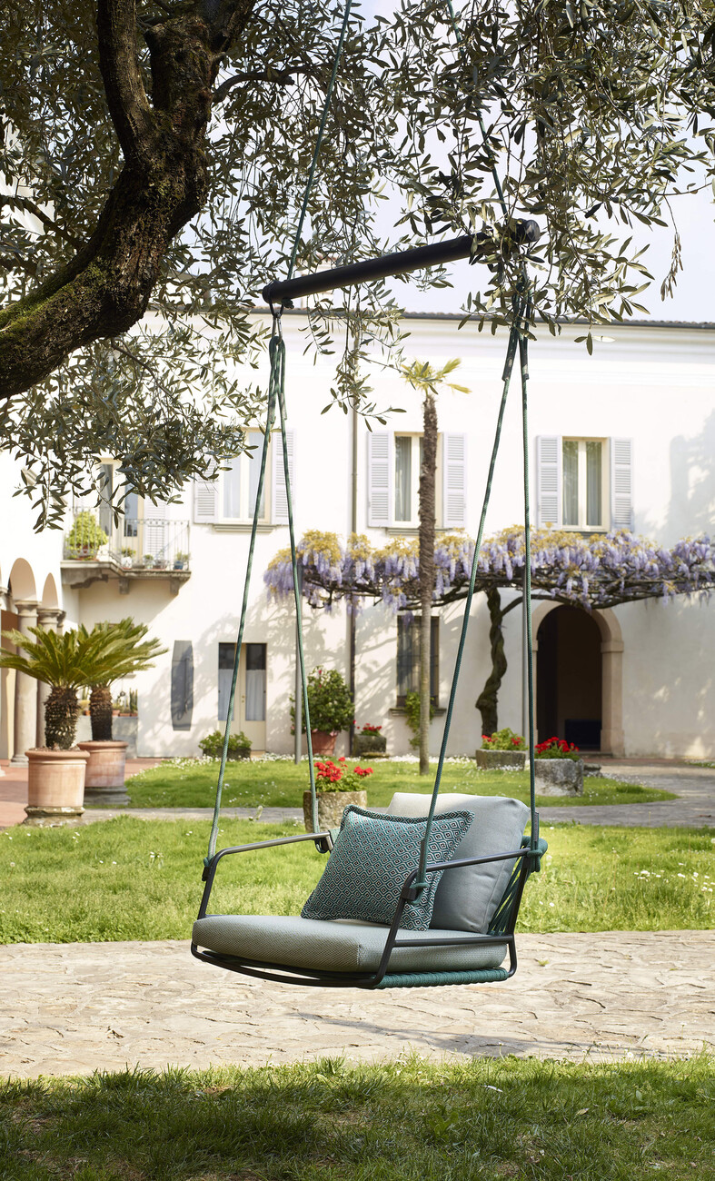 With "Lisa Swing" for S-CAB, architect and designer Marcello Ziliani has created a seat swing that also offers adults the wonderfully light feeling of swinging while at the same time being comfortable enough to relax for a while. The seat thus consists of a frame made of galvanised and powder-coated tubular steel, the seat and backrest are covered with woven sailor's yarn. Flexible, adjustable cushions provide that extra bit of comfort. Meanwhile, suspension is possible as desired or with the help of its own self-supporting structure. For an individual touch, numerous colour combinations of frame and rope are possible, for example anthracite and mint, mustard and silver, terracotta and orange or aviation blue and orange. "Lisa Swing" completes the Lisa seating furniture series from S-CAB, which offers models for indoor and outdoor use. (am)