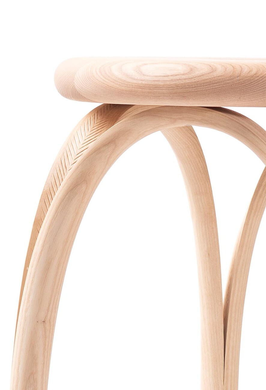 Pedrali presented the ‘Blume Sideboard’ by Sebastian Herkner, for which he took up the refined flower-shaped profile made of extruded aluminium from the collection of the same name. It has four curved doors made of plywood with ash or walnut veneer, which are combined with legs made of extruded aluminium in various anodised or powder-coated finishes, as well as a top made of composite marble or high-pressure laminate. Yves Béhar designed the ‘Rye’ stool for Zanat, a contemporary twist on the classic bentwood piece of furniture. Its round legs split and bend to form arches that support a solid wooden seat. ‘With ‘Rye’, I wanted to allude to the way trees branch out when two branches grow from one trunk. The result is legs that are structurally connected by beautiful arches. The stool, including the foot ring, is made of solid wood and is available in different types of wood and finishes. Nature and structure come together in a continuous movement, because you can't see where the structure begins and ends,’ says the designer about his first design in bentwood.