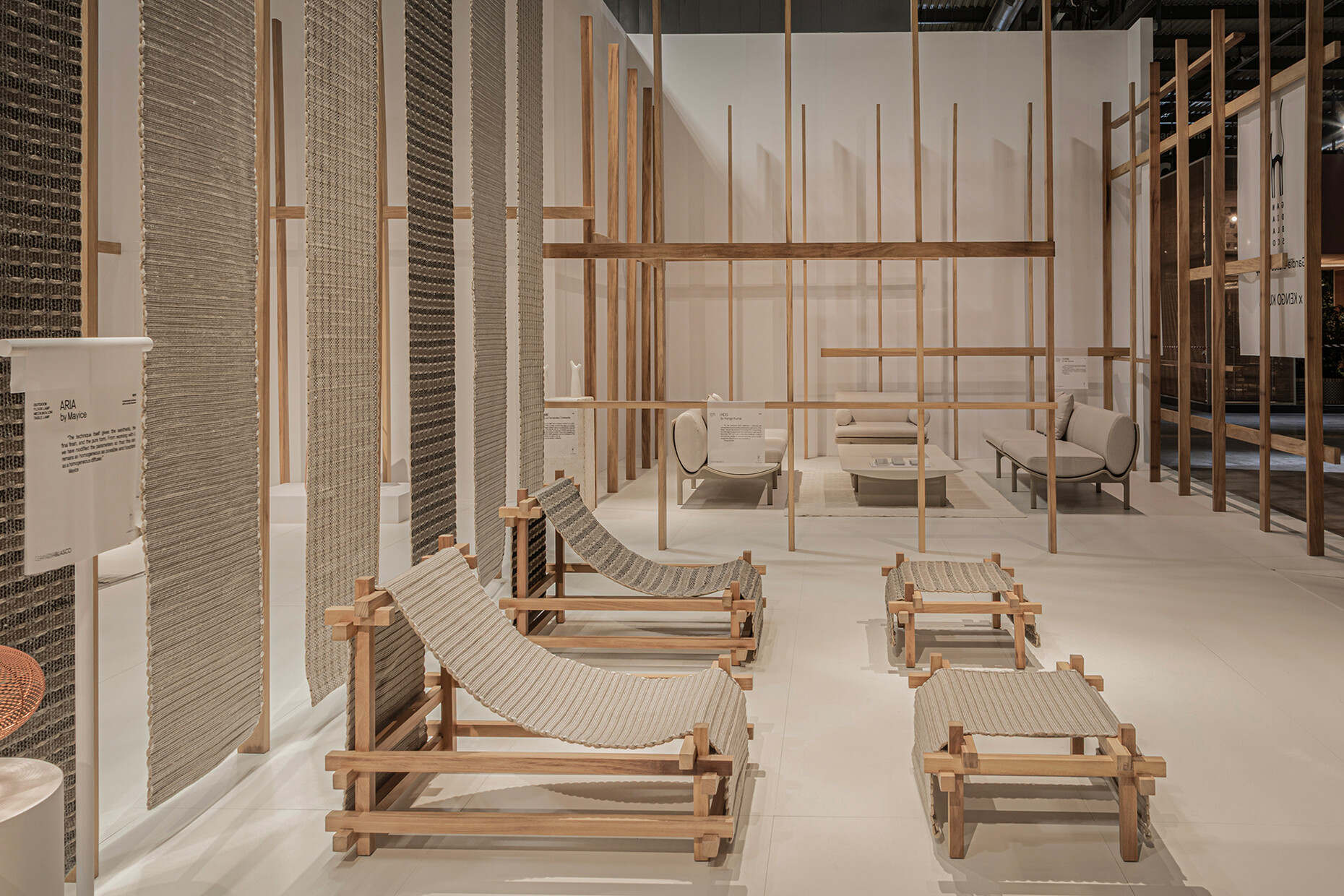 Roberto Lazzeroni designed ‘Meridies’ for Expormim made of FSC®-certified sapele wood with a wide seat and curved armrests and backrests, which, together with the matching side tables made of ceramic and travertine, crosses the threshold between the rooms. In the 4,000 square metre showroom, including Paola Lenti's magnificent garden, visitors were able to relax on the “Alma” armchairs and sofas by Francisco Gomez Paz. The load-bearing upholstery is made of hard-wearing Rete fabric and is attached to the steel structure with plastic buttons and Rope yarn cords. The very comfortable polyester fibre seat cushion is covered with Whim fabric in individual designs and is firmly attached to the frame using fibreglass rods. Extremis, meanwhile, provides a cosy two-seater cocoon with ‘Cabio’, whose canopy can be pulled down like a beach chair to provide protection from the sun and wind when needed. With ‘TAYA’, Rolf Benz offers a lounge sofa in two versions and covers for indoors and outdoors, which can be perfectly adapted to rooms of any size by combining individual modules – and can also be customised thanks to flexible seat and back cushions. In their design idea for Rolf Benz, Svend Loevbjerg and Henrik Pedersen from the Danish design agency Norsmind pursue the approach of ‘simply extending the living area a little further outwards – without limits or boundaries. With unrivalled indoor seating comfort.’