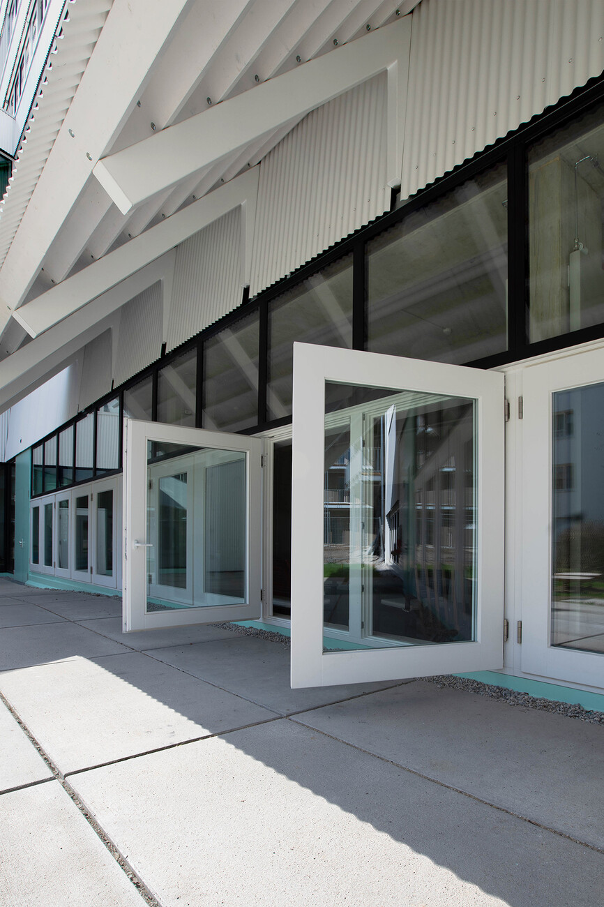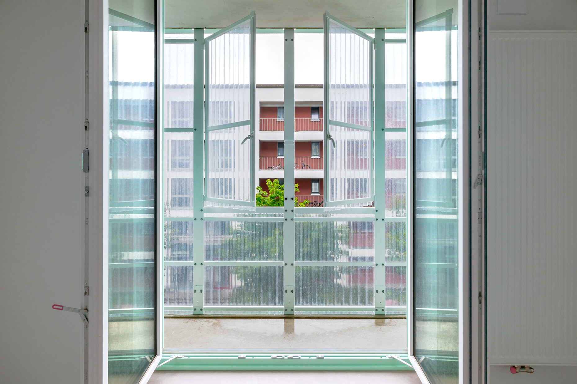 The result includes a flexible floor plan matrix from which multi-layered spatial configurations can be derived. The architects specified three apartment types, referred to as basic, branch, and nucleus living. While basic living tends to conform to conventional apartment floor plans, branch living includes common areas. In nucleus living, on the other hand, the specific use can always be redefined, with each party entitled to an individually occupied nucleus. "San Riemo" offers a commercial space and a lobby on the ground floor, the latter of which can be used as a common area for residents. In addition, there is a common roof garden with raised beds. Externally, the building opens up to the urban space with winter gardens and a glass façade of movable French doors, and sets playful accents with turquoise façade surfaces. "San Riemo" also impressed jury member Peter Cachola Schmal, director of the German Architecture Museum: "Here we have an exciting solution to the residential construction problems that concern all of us. And it was initiated by private parties and implemented independently – it’s a true role model!"