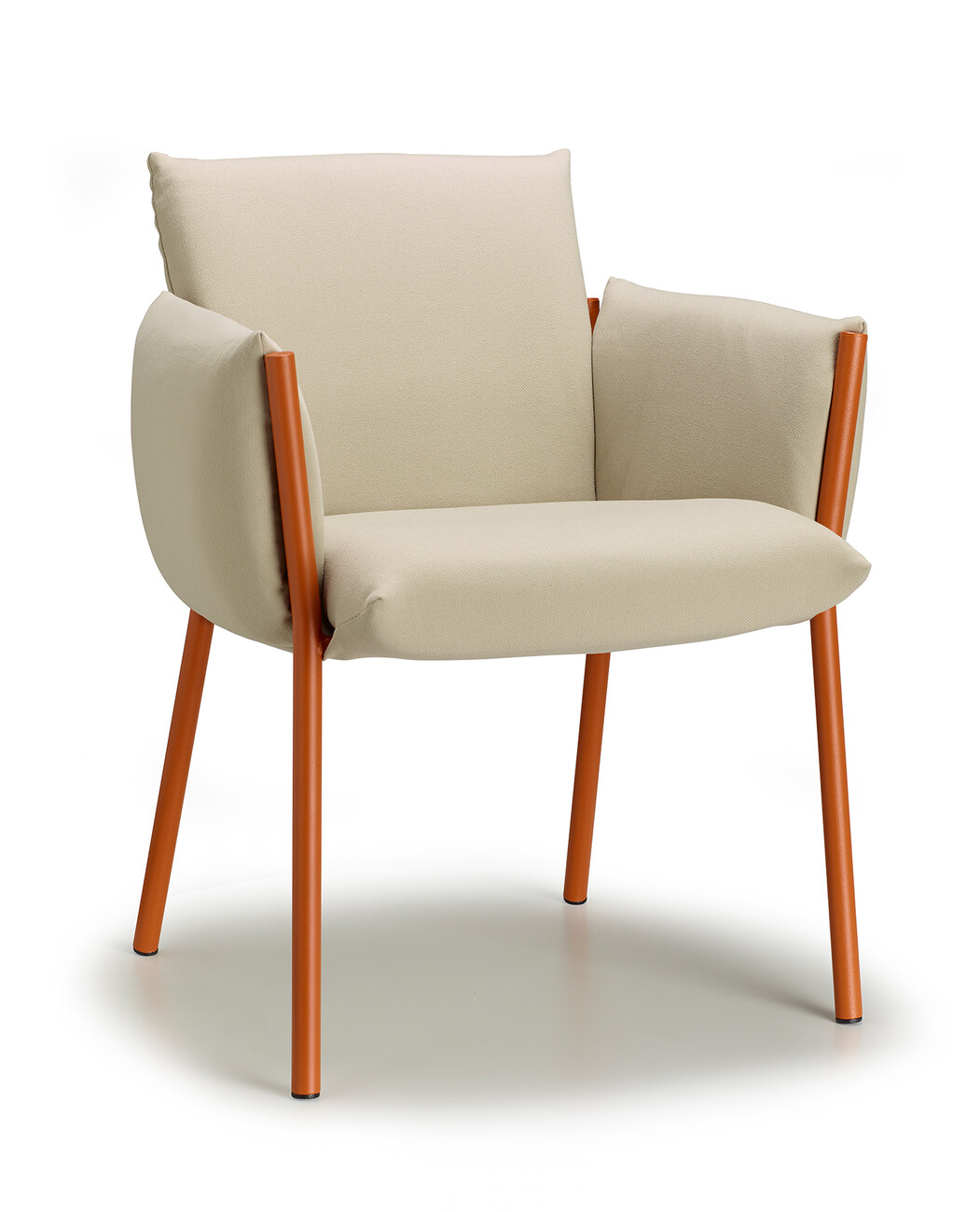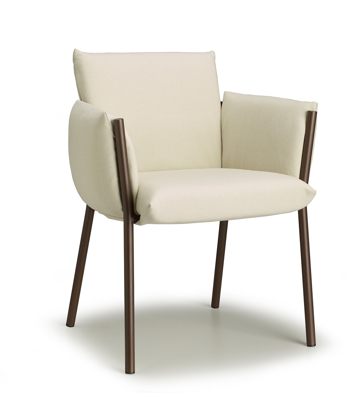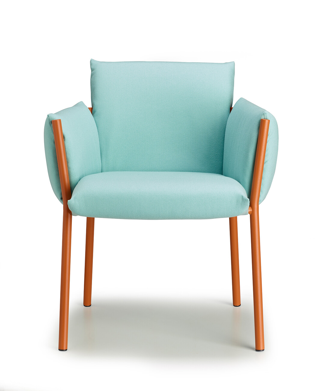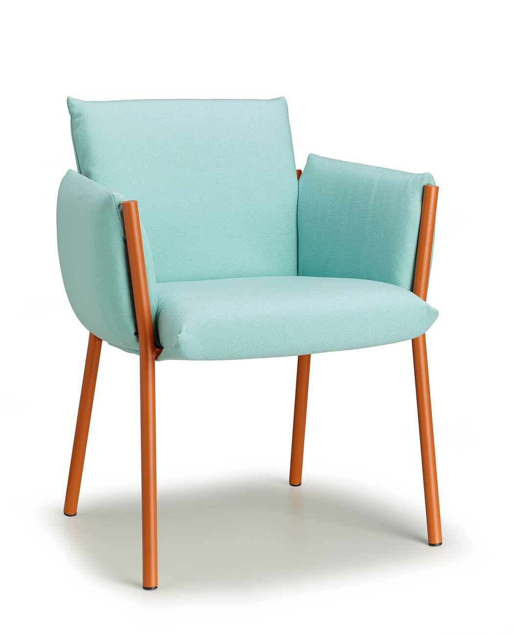 Regarding its compactness, “Brezza” is deliberately conceived as a kind of illusion, since all the components are easy to separate for the purposes of circular design. “‘Brezza’ is based on a powder-coated steel structure composed of tubes and plates. Once the cushions are in place, the frame recedes into the background in every respect – with the exception of the four legs, which give the object strength and a certain recognition value. The seat and backrest, as well as the two armrests, are connected. “This new way of ‘wrapping’ furniture makes it possible to position the upholstery by hooking it onto the frame and fixing it without zippers, Velcro, or buttons,” says Stabile, explaining the benefits of his design.