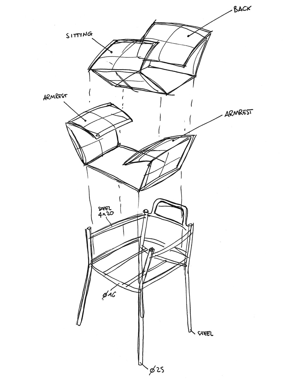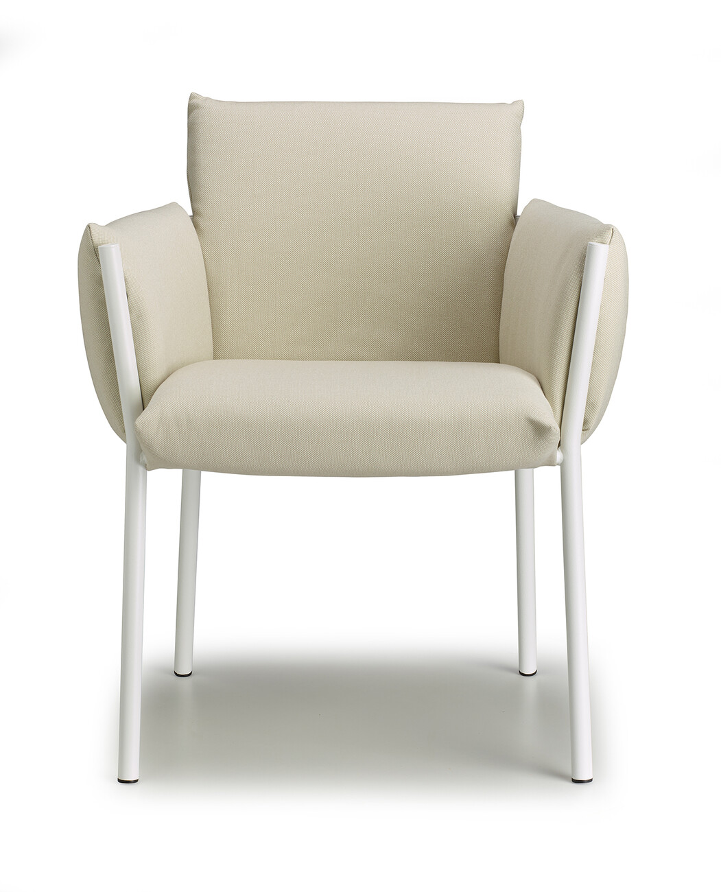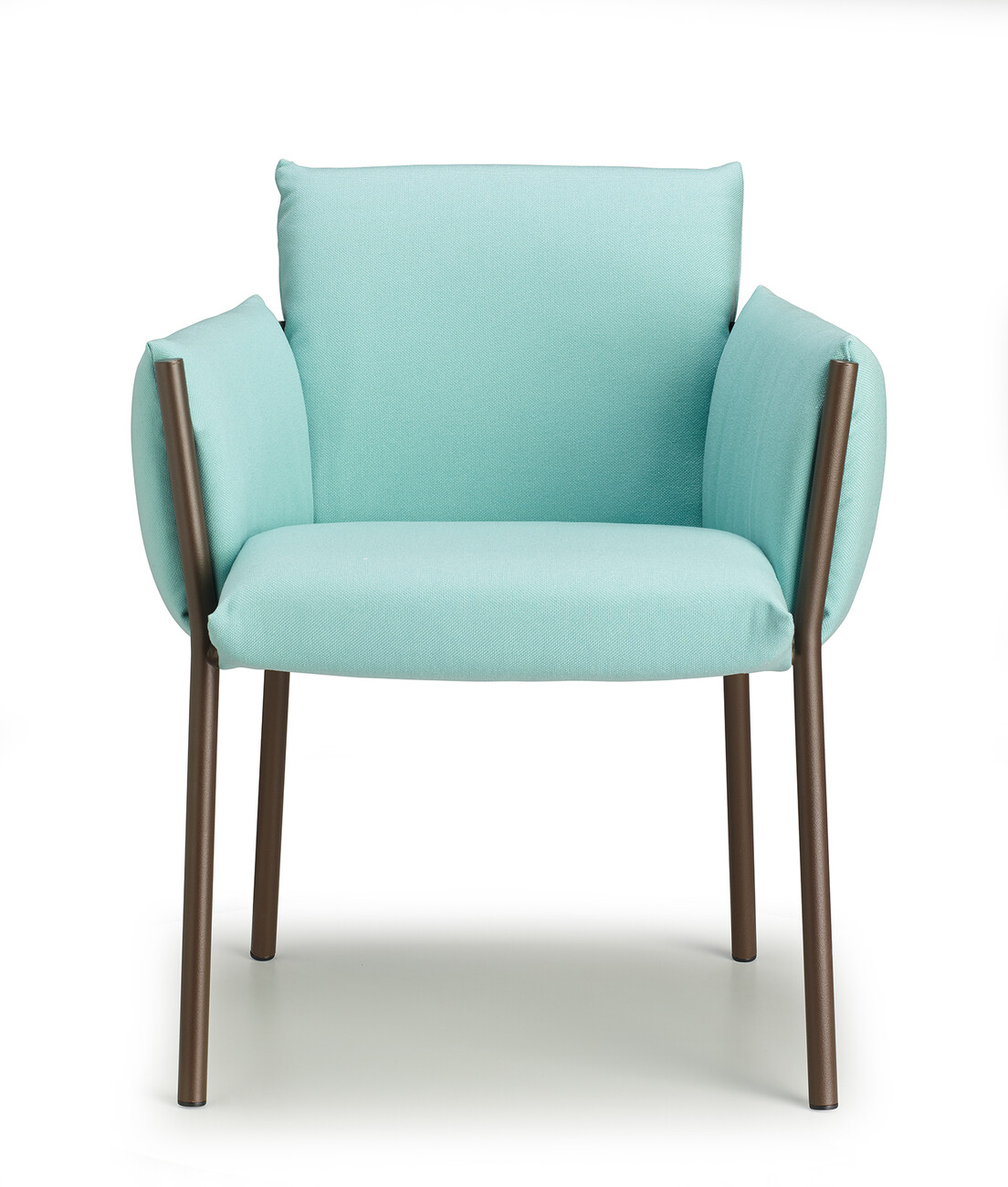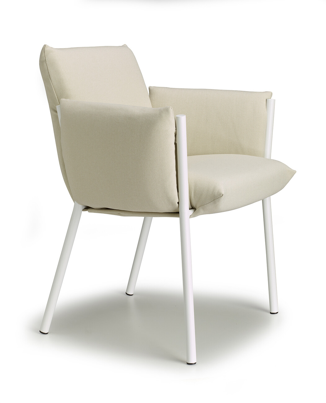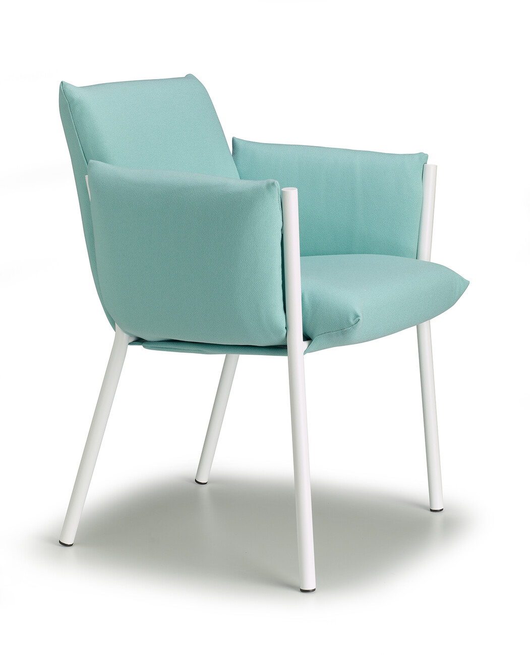 Regarding its compactness, “Brezza” is deliberately conceived as a kind of illusion, since all the components are easy to separate for the purposes of circular design. “‘Brezza’ is based on a powder-coated steel structure composed of tubes and plates. Once the cushions are in place, the frame recedes into the background in every respect – with the exception of the four legs, which give the object strength and a certain recognition value. The seat and backrest, as well as the two armrests, are connected. “This new way of ‘wrapping’ furniture makes it possible to position the upholstery by hooking it onto the frame and fixing it without zippers, Velcro, or buttons,” says Stabile, explaining the benefits of his design.