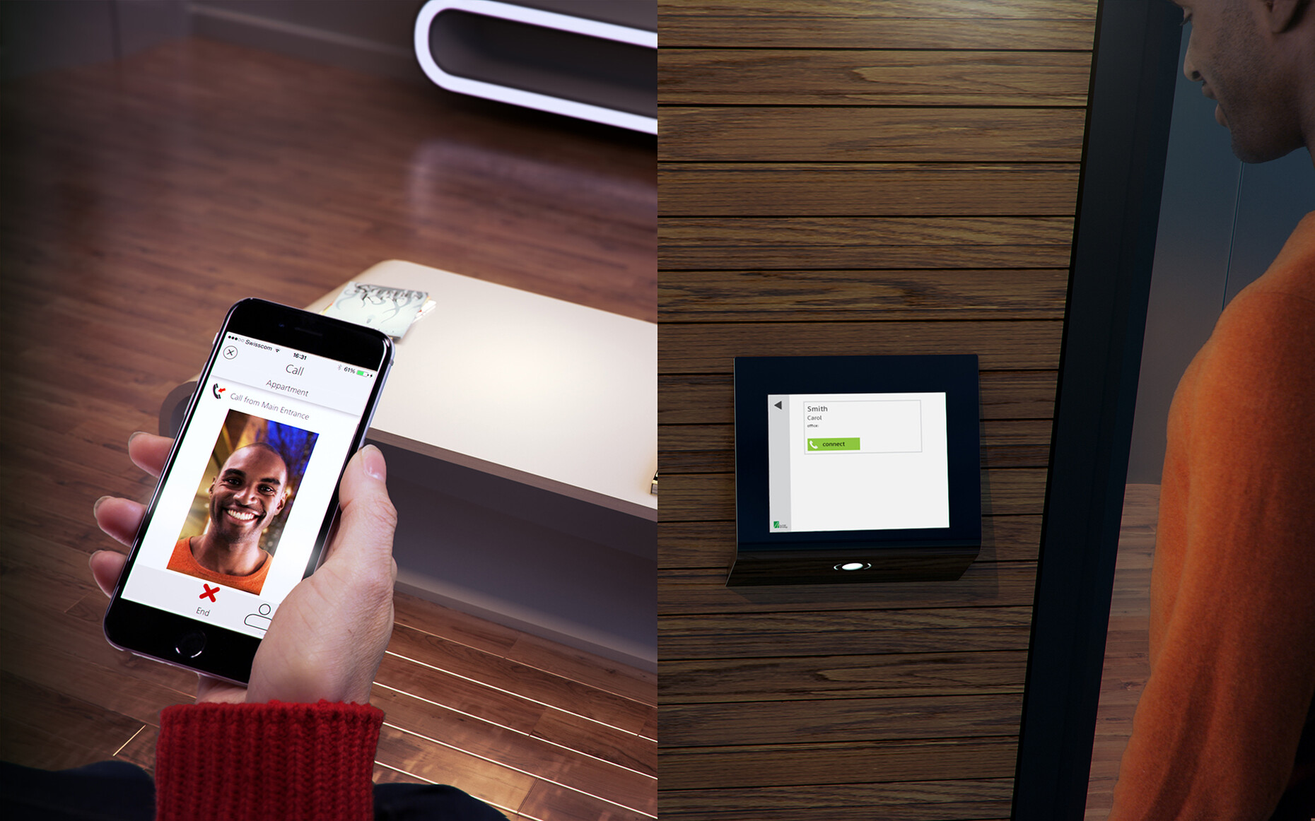 That said, the PORT system not only ensures residents can enter and leave the building easily. It also offers a safe means of providing access to guests. And does so in various ways. For example, if a visitor rings a resident’s bell the latter can identify him on a camera image, let him in and send him the elevator, which gets him to the right floor. And the occupant must not even necessarily be in their apartment to be able to do this. The image of the door camera can also be sent to the smartphone and the door subsequently opened with the help of the myPORT app. In the “Future Living”complex several apartments have a so-called entree – an entrance area to the flats that can be opened separately via the internet, and where say parcel couriers and other delivery services can deposit their deliveries. “Many people find such a semi-secure area offers a more pleasant solution than letting strangers into their actual apartment during their absence,”maintains Sebastian Lurg.