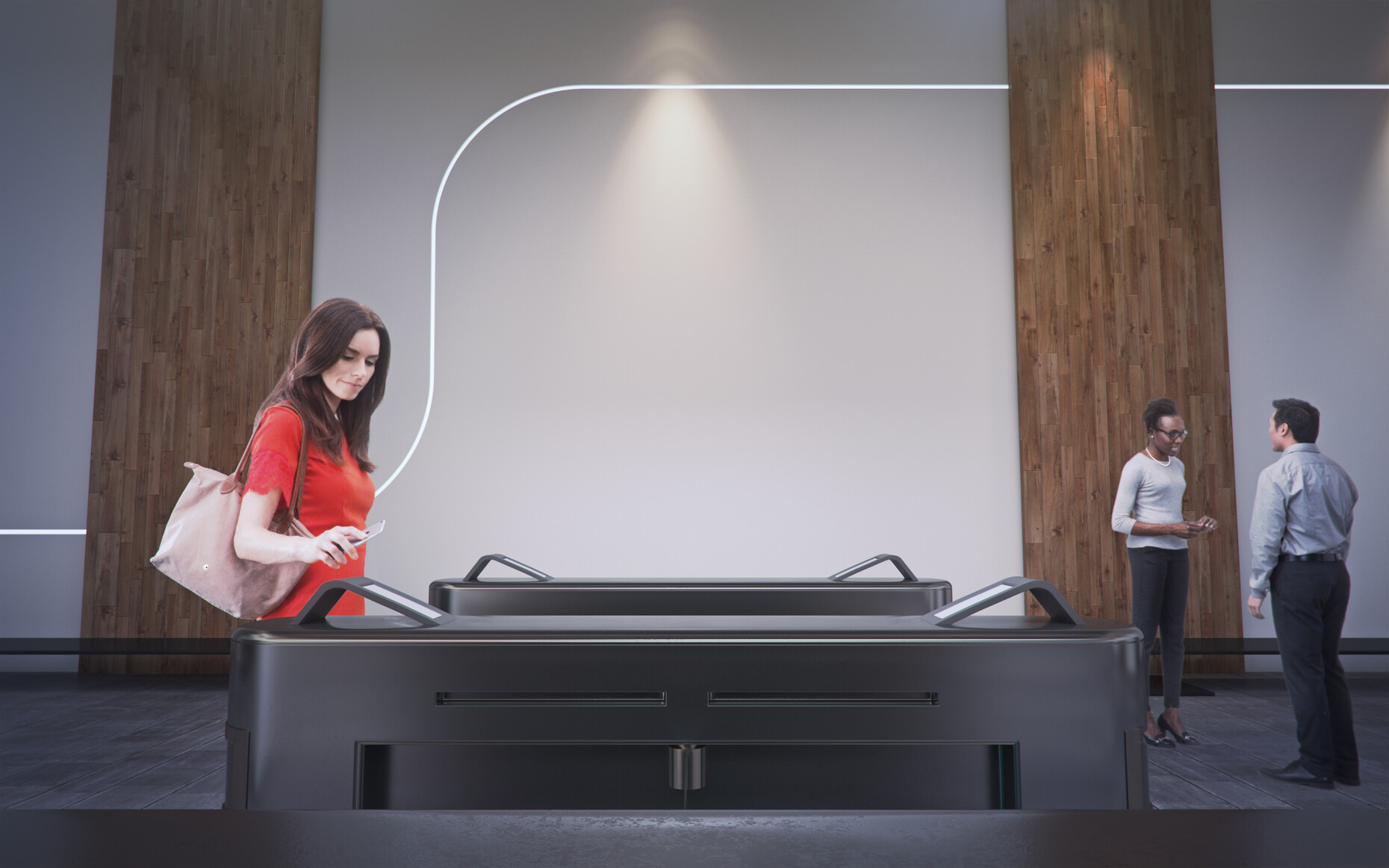 “Naturally, what we show in the “Future Living”buildings are very extensive solutions,”explains Sebastian Lurg. In pared-down versions that can be expanded the system is already in use in two high-rise projects offering high-end living namely Park Tower in Zug, Switzerland and the Omniturm in Frankfurt/Main. In the Omniturm the building entrance, underground garage and elevators are to be initially controlled via the PORT system. Further applications are to follow step by step.