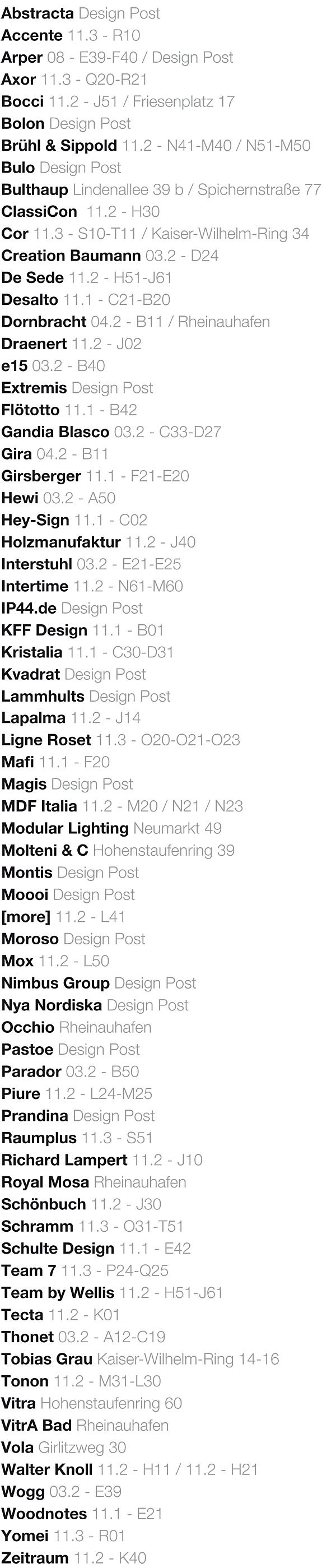 Selected manufacturers at imm cologne 2012