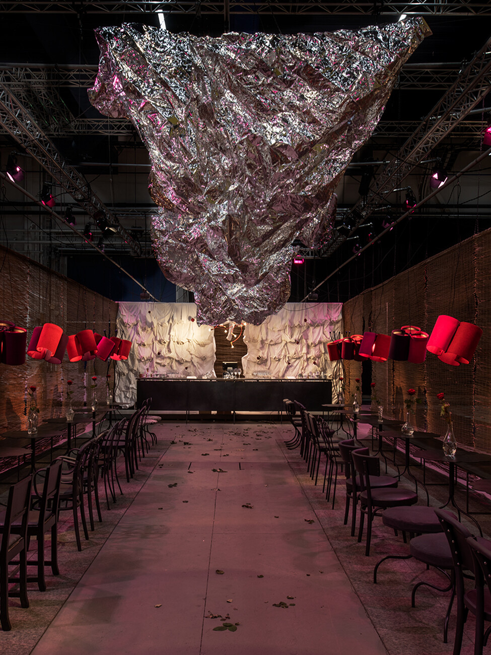 Other exhibitions at the fair included the Gallery Edition, which built a bridge to the parallel Stockholm Design Week: products from the city's showrooms thus also got a chance to be seen by the fair's visitors. This year's guests of honour and the designers of the installation in the entrance area of the halls were Anna Lindgren and Sofia Lagerkvist from Front Design, the first time that this programme point was created by a Swedish studio. For the presentation of their work, the duo created a mystical experience space that illustrated how diverse Swedish design can be. Their pebble-shaped "Pepple-Rubble-System" upholstery collection, conceived for Moroso, was thus covered with projections in a cave-like space that turned inspiration from nature into a sensory experience. The accompanying programme of the Stockholm Furniture Fair was also worth attending – this included talks with designers such as Raw Edges and Sabine Marcelis as well as architect Anders Lendagar. The temporary "Underbar" by Jonas Bohlin and Christine Ingridsdotter was equipped with recycled objects that can be reused after the trade fair has ended – from white men's shirts that served as wall decor to borrowed chairs or rescue blankets that made a glamorous appearance when formed into a ceiling sculpture.