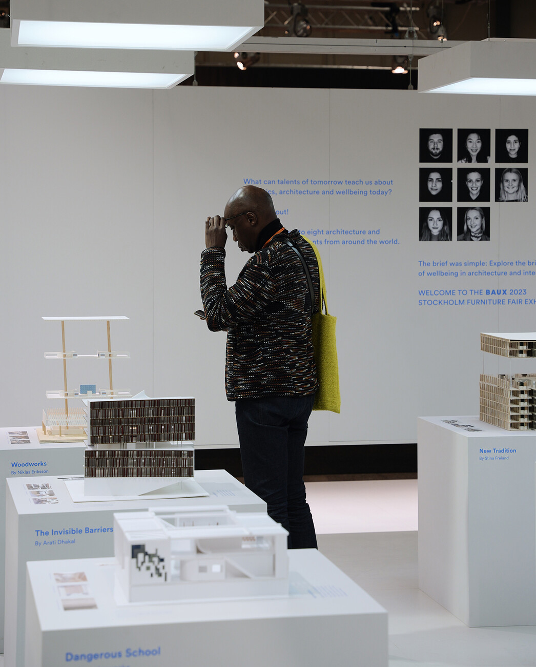 In general, the importance of the Stockholm Design Week showrooms, exhibitions and events in the city increased, a trend that was already apparent at similar trade fairs in recent months. Hanna Nova Beatrice thus actively promotes cooperation between the two events and shows what a flexible trade fair can offer beyond the halls. Walking through the workshops, exhibitions and showrooms in Stockholm, for example, you could feel a new upholstery textile made of recycled yarns by Giulio Ridolfo called "Steelcut Beat" at Kvadrat as well as "Aaren" and "Einar" by Kvadrat/Raf Simons. Also special was the visit to the Neko Health Center by Note Design Studio, a health centre that uses AI technology for proactive health care. The Swedish auction house Bukowskis presented the exhibition "Fundament" in collaboration with Stockholm-based architecture and design studio Taf. The posh department stores Nordiska Kompaniet and Nordiska Galleriert offered space and display windows for design exhibitions, including the work of students from Linköpings Universitet. Monica Förster created an atmospheric light installation in Sofia Church. On view until 27 August 2023 is the exhibition "Tham & Videgard – On: Architecture" at the ArkDes Museum of Architecture and Design, which makes the architecture firm's projects walkable in a unique way. And after sunset, the light installation "Shelter" by Daniel Rybakken on the water in front of the idyllic island of Skeppsholmen offers a homage to the scientist and Nobel Peace Prize winner Fridtjof Nansen.